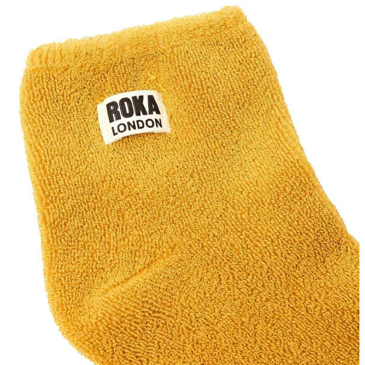 Manufactured from 82% organic cotton, 10% nylon and 2% elastane are these corn yellow women's watford socks by the designer Roka. Also the corn yellow socks are designed in a plain pattern, All the socks come complete with roka packaging. The Roka Watford Socks - Corn Yellow are the perfect socks for everyday wear. The organic fluffy cotton blend ensures your feet are kept snug and comfortable all day, whilst the beautiful yellow colour keeps you looking stylish and trendy. These socks come with a Roka logo stitched on the side, giving them that staple look.