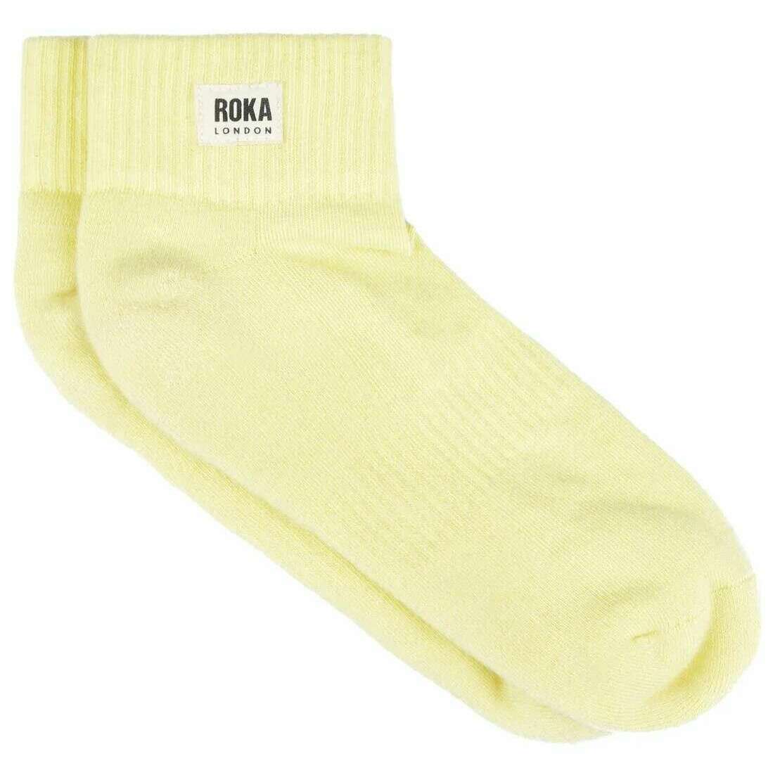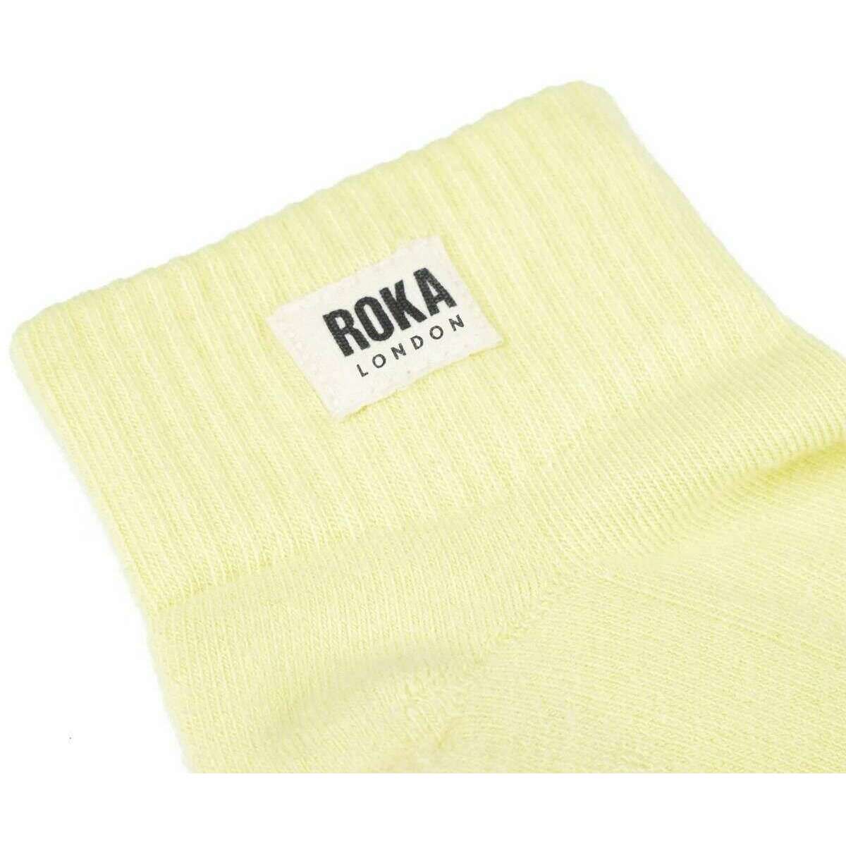 Perfect for men or women are these Roka lemonade yellow wembley socks, they are also made from 82% organic cotton, 16% recycled nylon and 2% elastane. Also the lemonade yellow socks are designed in a plain pattern, All the socks come complete with roka sock tags. The Roka Wembley Socks - Lemonade Yellow are a must-have to add to your collection. The organic cotton blend ensures your feet are kept snug and comfortable all day, whilst the beautiful bright colour keeps you looking stylish and trendy. Completing this pair is the Roka London logo stitched on the top side of each sock to give that staple look.