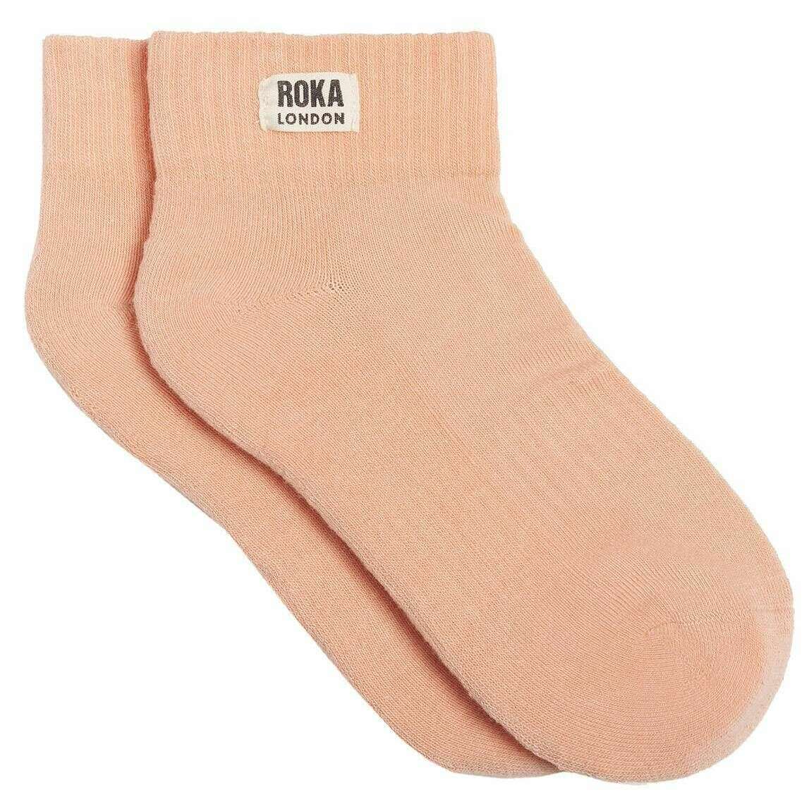These well made unisex wembley socks from Roka come in a nougat pink colour and are manufactured from 82% organic cotton, 16% recycled nylon and 2% elastane. Also the nougat pink socks are designed in a plain pattern, All the socks come complete with roka tags. The Roka Wembley Socks - Nougat Pink are a must-have to add to your collection. The organic cotton blend ensures your feet are kept snug and comfortable all day, whilst the beautiful bright colour keeps you looking stylish and trendy. Completing this pair is the Roka London logo stitched on the top side of each sock to give that staple look.