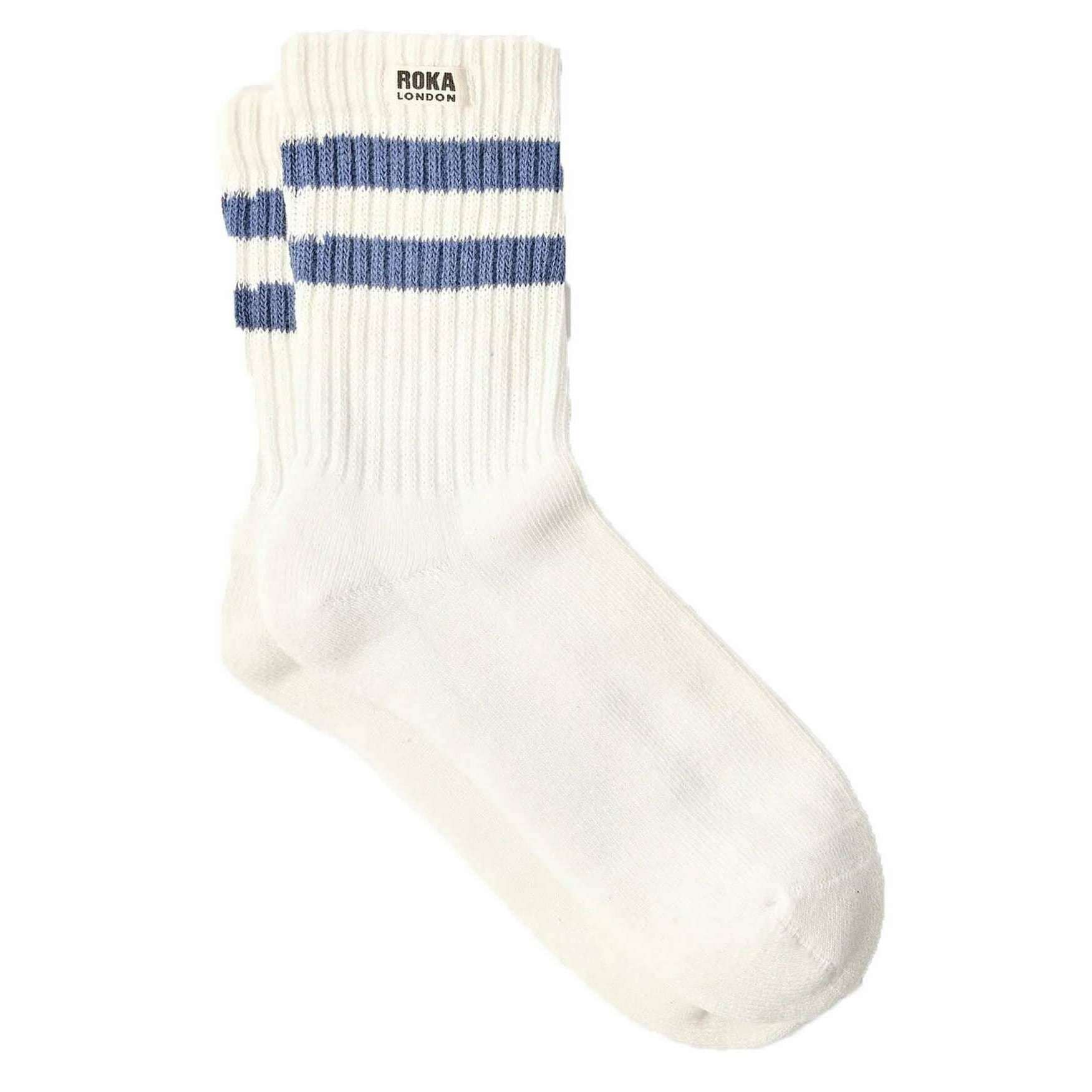 Brought to you by the brand Roka, these coastal blue/white men's windsor socks are made from 82% organic cotton, 10% nylon and 2% elastane. Also the coastal blue/white socks are designed in a striped pattern, All the socks come complete with roka packaging. The Roka Windsor Socks - Coastal Blue/White offer natural breathability and lasting softness for ultimate comfort. The classic crew length is elevated with signature double stripes, while a soft stretch cuff ensures they stay put throughout the day. Designed to keep their shape, colour, and softness wash after wash, these socks are ideal for commuting, gym mornings, and everything in between.
