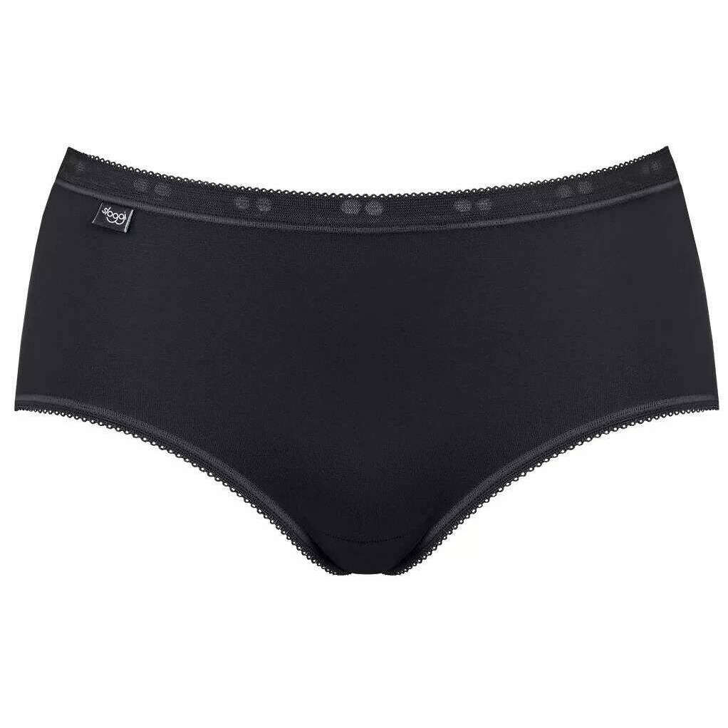 This women's basic+ midi knickers by the brand Sloggi is made from 95% cotton and 5% elastane and is showcased in black. Also the black underwear is designed in a plain pattern, It is recommended to machine washable at 60degrees to keep this underwear in good condition. All the underwear comes complete with a sloggi presentation box. The Sloggi Basic+ Midi Knickers - Black are a must-have for women looking for ultra comfort and reliability. This pair has been crafted from high-quality cotton jersey that is made to last whilst upholding the soft feel and elasticity. The classic cut with a high waistline and wider sides has been carefully designed to ensure a comfortable fit for an everyday wear.