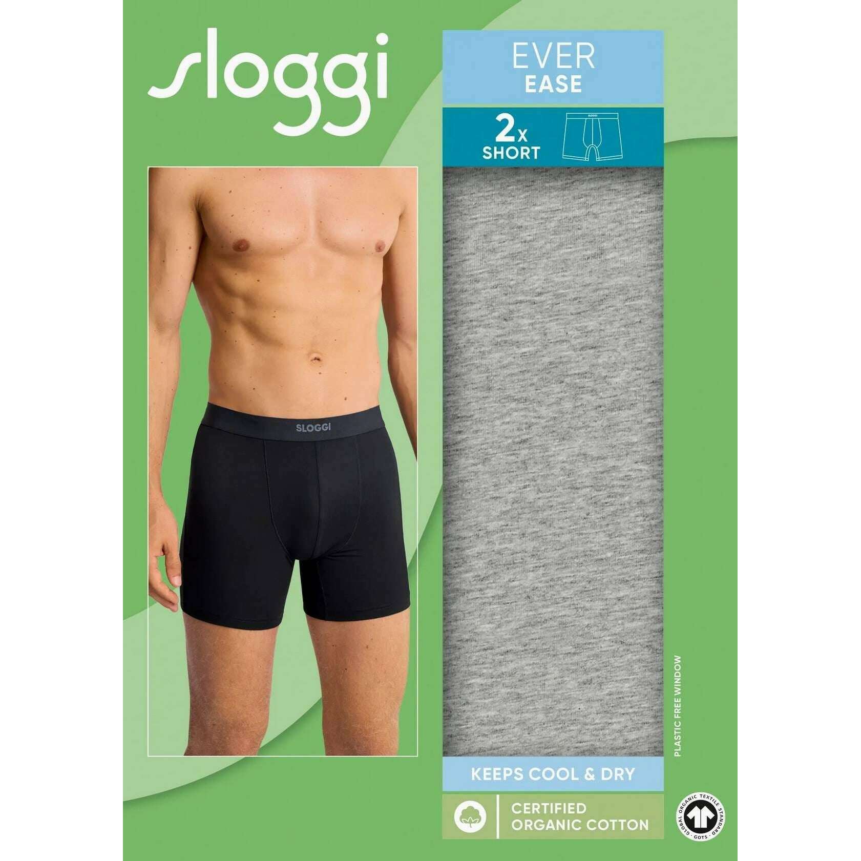 This ever ease 2 pack boxer short for men is fashioned by the brand Sloggi in a grey colour and is made from 95% cotton and 5% elastane. Also the dark grey melange underwear is designed in a plain pattern, It is recommended to machine wash 40 degrees to keep this underwear in good condition. 2 pack underwear is value for money ensuring they are a good buy, All the underwear comes complete with sloggi packaging. The Sloggi Ever Ease 2 Pack Boxer Short - Dark Grey Melange features cooling HeiQ smart temp technology that adjusts to your body temperature for a comfortable wear. These underwear have been crafted with eco-certified organic cotton offers great sustainability for environmental help and optimal comfort with the breathable and high-quality material. Offering a dry wear is the breathable fabric and quick-drying feature for extra all-day comfort.