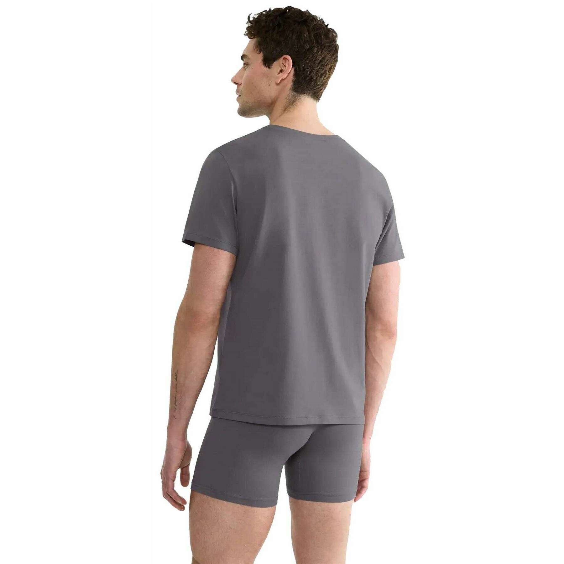 Brought to you by the brand Sloggi, this shiver grey men's slg base o-neck t-shirt is made from 95% cotton and 5% elastane. Also the shiver grey t-shirt is designed in a plain pattern, It is recommended to machine wash at 40 degrees to keep this t-shirt in good condition. All the t-shirts come complete with sloggi packaging. The Sloggi SLG Base O-Neck T-Shirt - Shiver Grey perfect for versatile styling whilst offering optimal comfort. The round neck and regular fit design gives a versatile modern and contemporary look that can be styled in endless ways. Crafted with eco-certified organic cotton offers great sustainability for environmental help whilst giving you freedom of movement during your everyday travels with the elastane content.