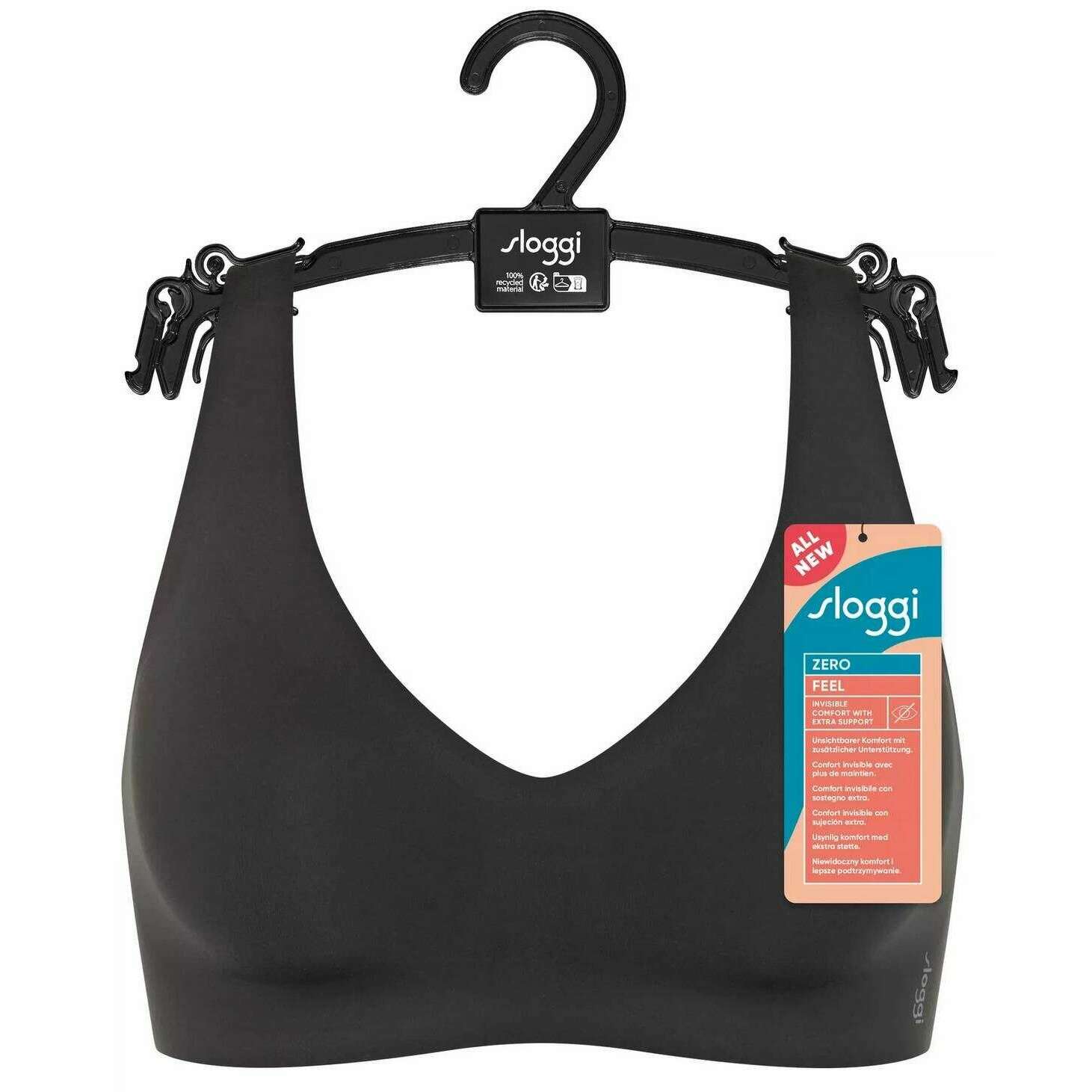 Designer Sloggi has brought you this women's 76% polyamide and 24% elastane underwear using black tones. Also the black underwear is designed in a plain pattern, It is recommended to machine wash at 30 degrees and do not tumble dry to keep this underwear in good condition. All the underwear comes complete with a sloggi packaging. The Sloggi Zero Feel Soft Bra - Black features unbeatable details that offer optimal comfort and style for underwear that you will not want to take off. This bralette has medium support with seamless edges ensuring a completely invisible look underneath any outfit, with adjustable straps and a hook and eye closure to personalise to fit you best. Crafted from sustainable recycled materials that are breathable, moisture-wicking, lightweight and have 360-degree stretch for full freedom of movement whatever activity you are doing. Due to the stretch this piece does not dig in, pinch or leave any red marks, making the most comfortable wear for all day every day.