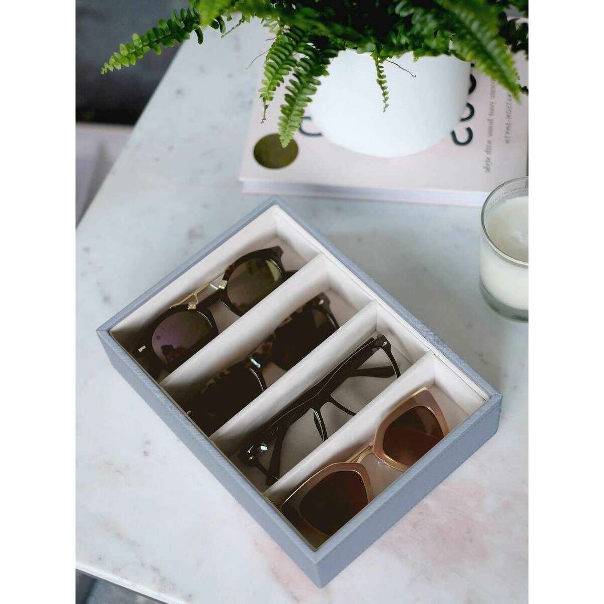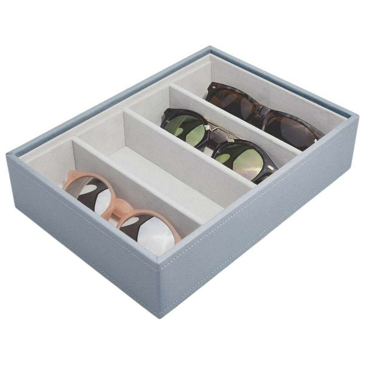 Using blue faux leather and velvet, this classic glasses accessory layer by Stackers is perfect for women and a must have. It measures 6cm(height) x 25cm(width) x 18cm(depth). It is recommended to wipe clean to keep this jewellery box in good condition. All the jewellery boxes come complete with stackers packaging. The Stackers Classic Glasses Accessory Layer - Dusky Blue is perfect for storing glasses and larger accessories and can be used as in-drawer storage or stacked with other layers from the Stackers collection to create a custom jewellery box. Ideal for women who love to accessorise, this lovely layer looks elegant and smart and has been professionally crafted from high quality materials.