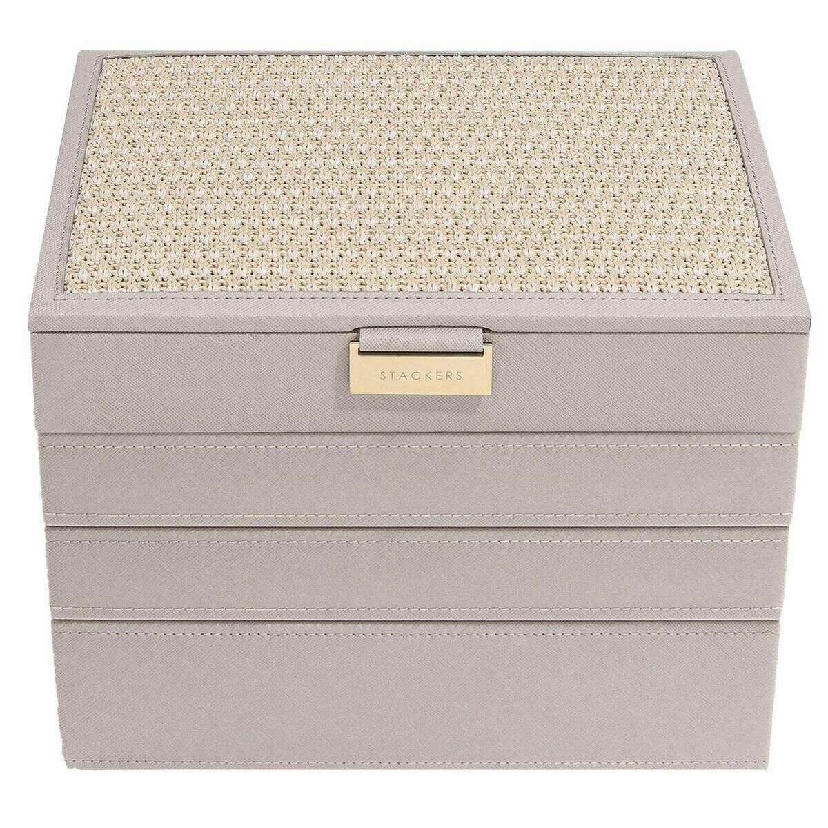Stackers Classic Set of 4 Jewellery Box - Taupe Raffia