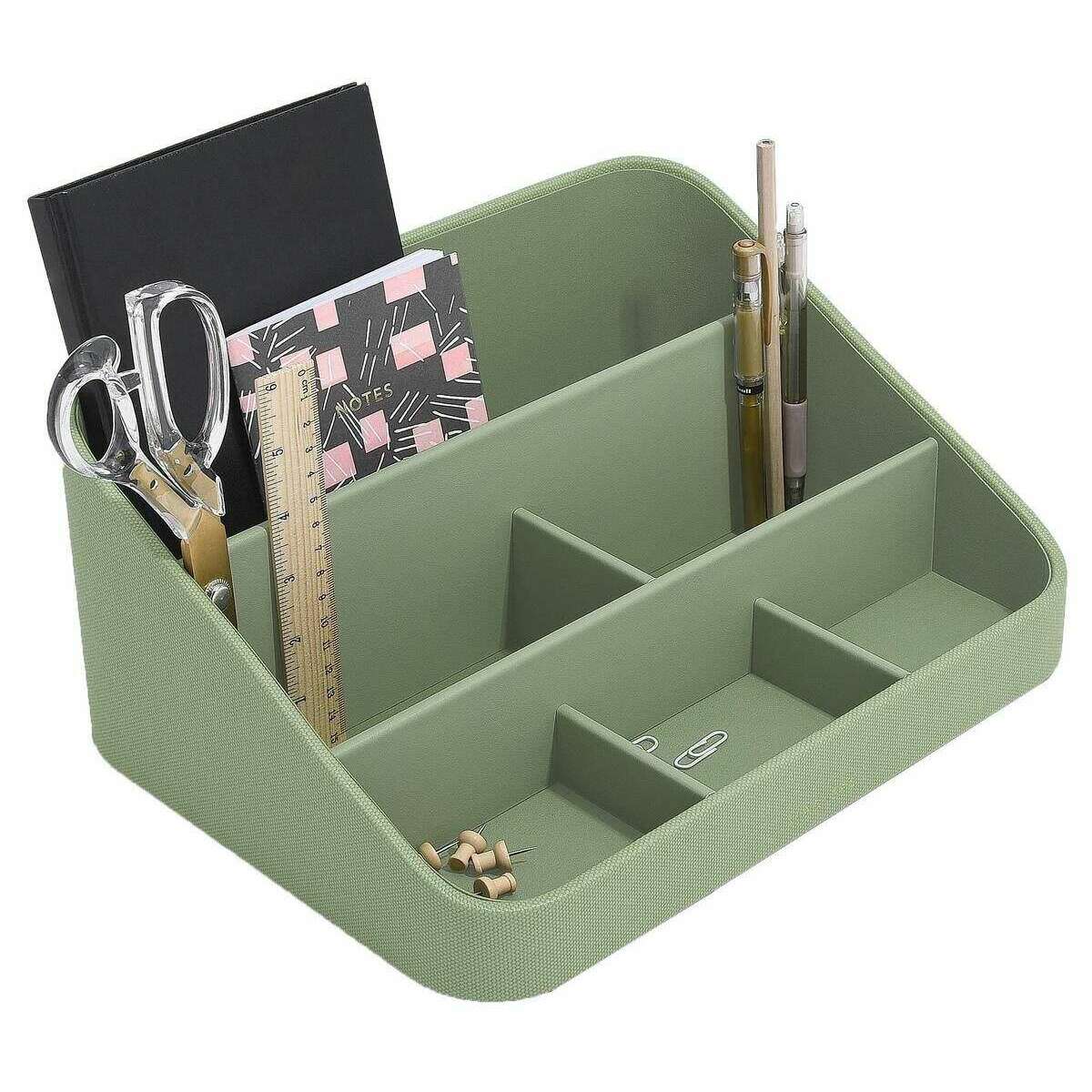 Designer Stackers has brought you this women's faux leather desk accessory using pistachio green tones. It measures 14.5cm(height) x 24.5cm(width) x 32.5cm(depth). All the desk accessories come complete with stackers packaging. The Stackers Desk Organiser - Pistachio Green features a beautiful green design. This desk organiser has many sections for stationary, notebooks and many more trinkets, all within easy reach!