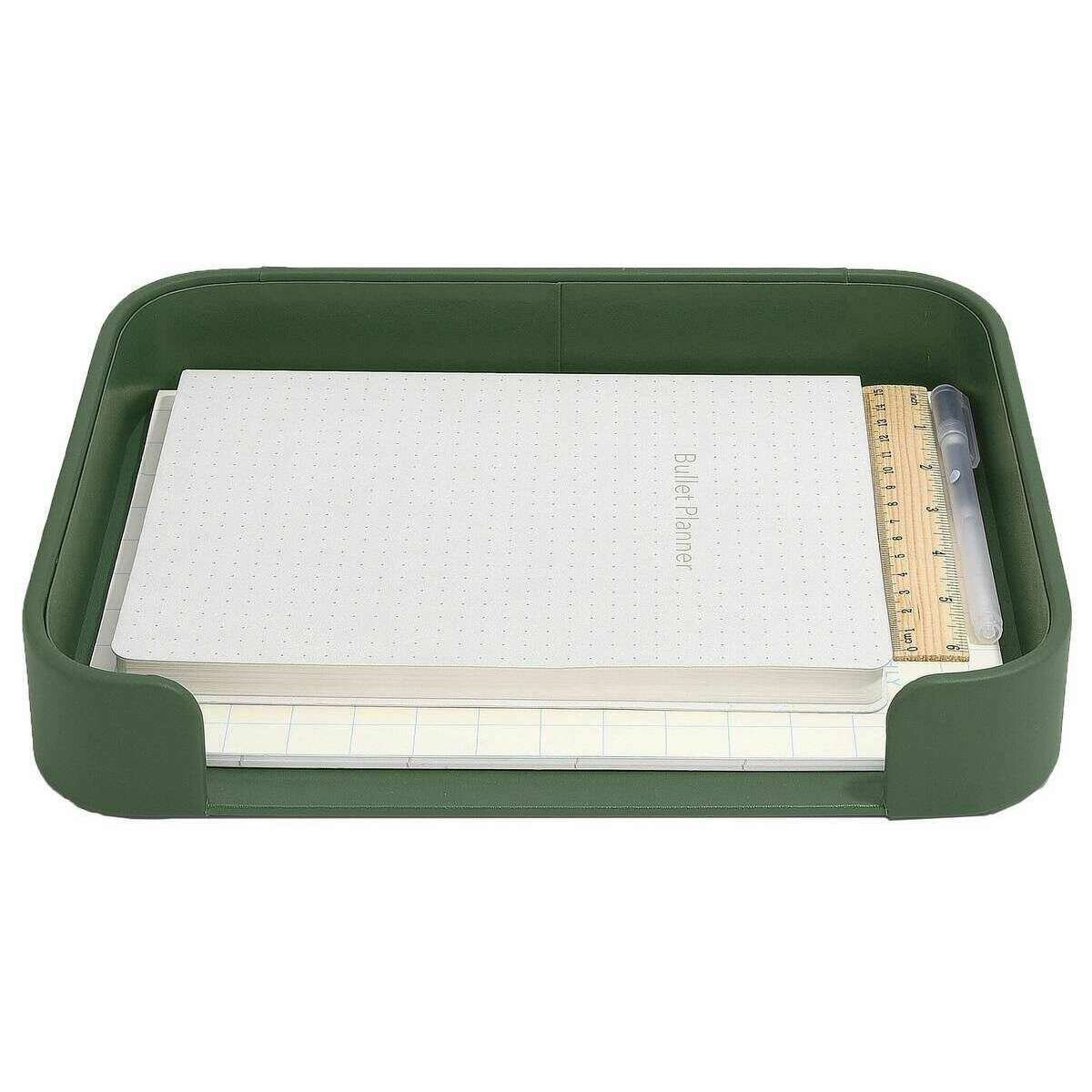 This desk organiser set for women is fashioned by the brand Stackers in a green colour and is made from faux leather. It measures 20cm(height) x 25cm(width) x 33cm(depth). All the desk accessories come complete with stackers packaging. The Stackers Desk Organiser Set - Emerald Green features a beautiful green design. This desk organiser has many sections for stationary, notebooks and many more trinkets. Comes complete with a letter tray for extra storage.