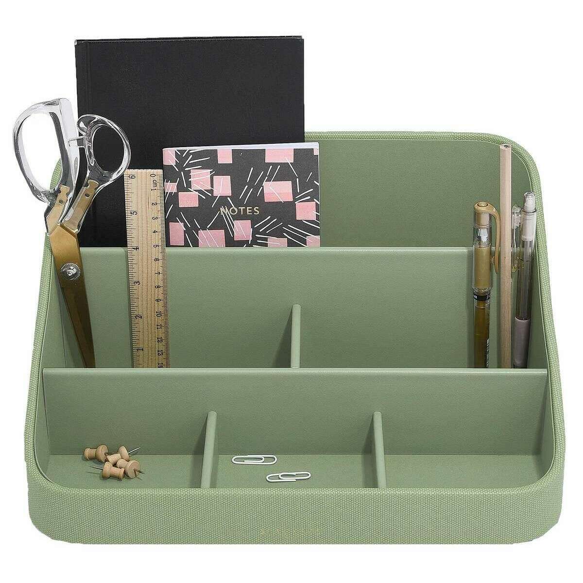 Introducing this women's desk organiser set by Stackers, it is manufactured from faux leather in a pistachio green colour. It measures 20cm(height) x 25cm(width) x 33cm(depth). All the desk accessories come complete with stackers packaging. The Stackers Desk Organiser Set - Pistachio Green features a beautiful green design. This desk organiser has many sections for stationary, notebooks and many more trinkets. Comes complete with a letter tray for extra storage.