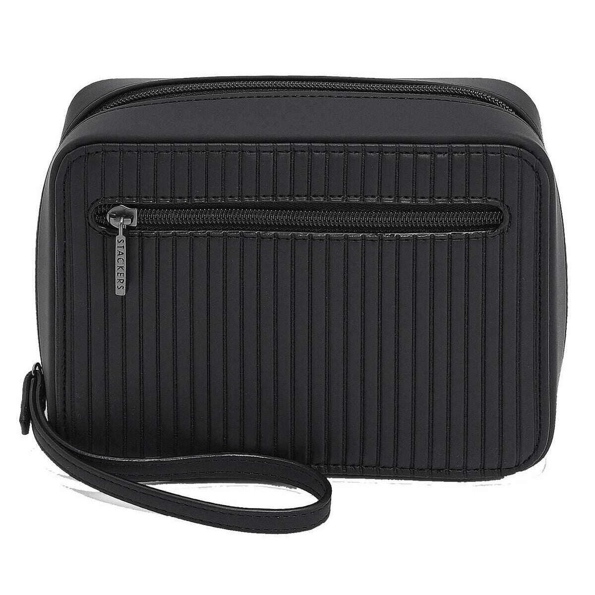 This women's fluted cable tidy has been made from faux leather, featured in a black colour and is from the brand Stackers. It measures 16cm(height) x 20.5cm(width) x 7cm(depth). All the home accessories come complete with stackers packaging. The Stackers Fluted Cable Tidy - Black is a must have when on the go! This black cable tidy is perfect for keeping all your belongings in order. Includes a zip closure for extra security.