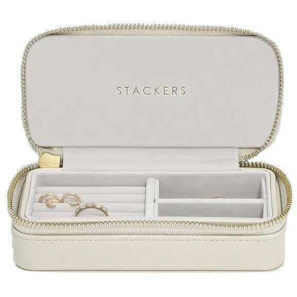 Using beige faux leather and linen, this medium zipped travel jewellery box by Stackers is perfect for women and a must have. It measures 4.5cm(height) x 15.5cm(width) x 7cm(depth). All the jewellery boxes come complete in stackers packaging. The Stackers Medium Zipped Travel Jewellery Box - Oatmeal/Linen Beige is an ideal travel essential to keep your jewellery safe in one place. Guaranteed not to disappoint, this will be certain to impress with its small size and soft interior featuring a ring or stud earring section, and two larger sections. Make this a must have for any stylish woman who travels with jewellery.