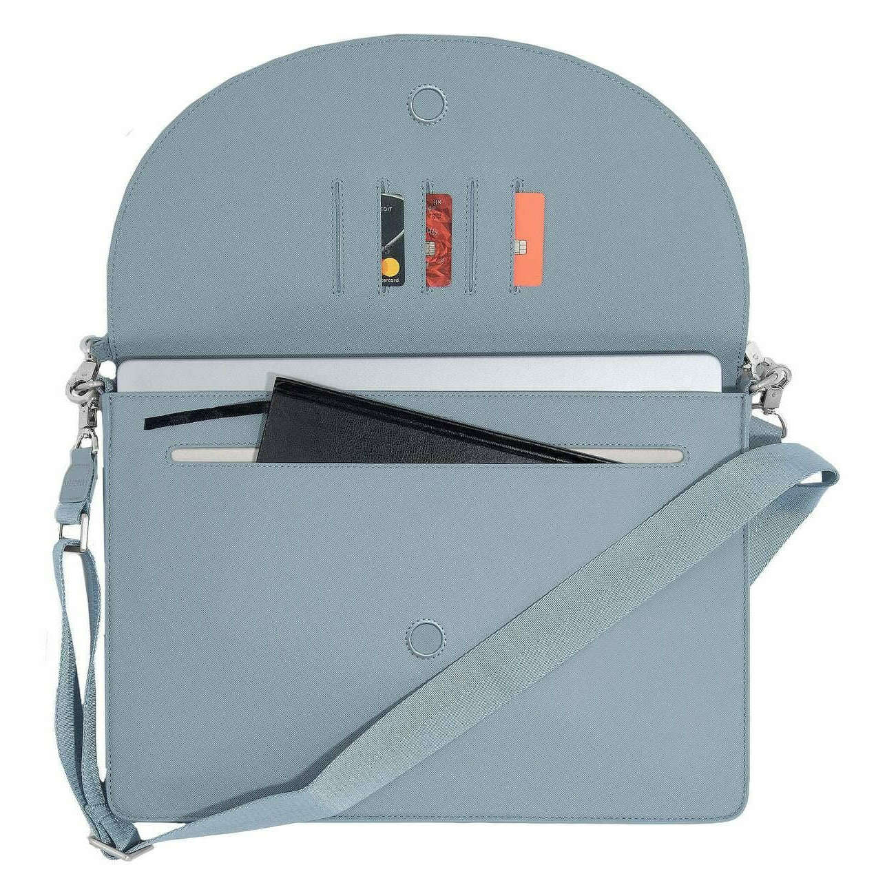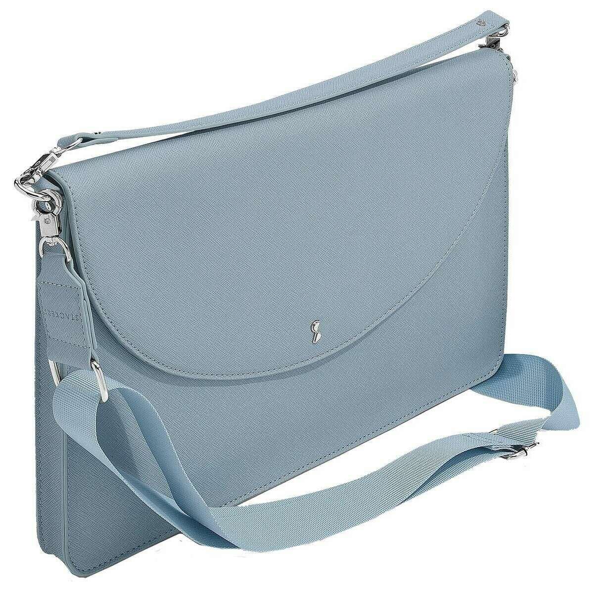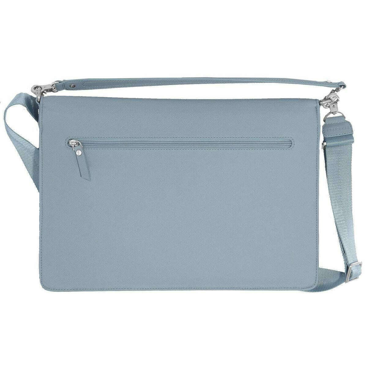 Using blue faux leather, this slim laptop bag by Stackers is perfect for women and a must have. It measures 4.2cm(height) x 37.6cm(width) x 26.5cm(depth). All the bags come complete with stackers packaging. The Stackers Slim Laptop Bag - Dusky Blue is a must have when on the go! This classy blue laptop bag features notebook space, card slots and a padded sleeve for your laptop. Perfect for everyday use with its removable handle and crossbody strap.