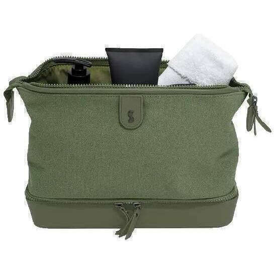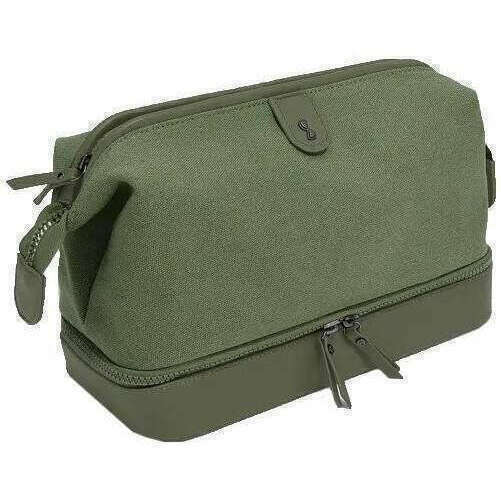 This men's wash bag has been made from faux leather and canvas, featured in a green colour and is from the brand Stackers. It measures 28cm(height) x 13cm(width) x 18.5cm(depth). All the bags come complete in stackers packaging. The Stackers Wash Bag - Green perfect for taking travelling or to keep your bathroom organised and neat. This smart and classic bag has a large main compartment with separate compartments to arrange your toiletries and an additional large bottom compartment closed by a zipper to keep items such as toothbrushes or razors with an optional removable divider. This bags lining is wipeable, great for keeping it looking fresh and free from stains.