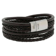 Introducing this men's bonacci layered multi-strand leather bracelet by Steel & Barnett, it is manufactured from 100% cowhide leather and stainless steel in a brown colour. All the bracelets come complete with steel & barnett packaging. The Steel & Barnett Bonacci Layered Multi-Strand Leather Bracelet - Brown is a refined expression of craftsmanship and timeless style. Handcrafted from fine?grade genuine cowhide leather, each strand is meticulously braided to create a rich, layered texture that speaks to both quality and sophistication. Its 12 mm width offers a bold yet versatile presence, making it suitable for everyday wear or elevated occasions. The bracelet is finished with a brushed steel clasp, engineered from 316L stainless steel for exceptional durability and resistance to corrosion. Its magnetic clasp design ensures effortless fastening while maintaining a secure, comfortable fit throughout the day. Elegant, durable, and thoughtfully designed, the Bonacci bracelet is a standout accessory that complements modern style with a classic touch.