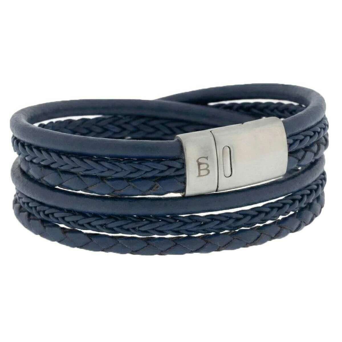 Designer Steel & Barnett has brought you this men's 100% cowhide leather and stainless steel bracelet using jeans blue tones. All the bracelets come complete with steel & barnett packaging. The Steel & Barnett Bonacci Layered Multi-Strand Leather Bracelet - Jeans Blue is a refined expression of craftsmanship and timeless style. Handcrafted from fine?grade genuine cowhide leather, each strand is meticulously braided to create a rich, layered texture that speaks to both quality and sophistication. Its 12 mm width offers a bold yet versatile presence, making it suitable for everyday wear or elevated occasions. The bracelet is finished with a brushed steel clasp, engineered from 316L stainless steel for exceptional durability and resistance to corrosion. Its magnetic clasp design ensures effortless fastening while maintaining a secure, comfortable fit throughout the day. Elegant, durable, and thoughtfully designed, the Bonacci bracelet is a standout accessory that complements modern style with a classic touch.