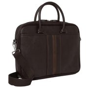 This women's kenriick striped document bag by the brand Ted Baker is made from 100% polyurethane and is showcased in brown. It measures 28cm(height) x 39cm(width) x 6cm(depth). All the bags come complete with ted baker packaging. The Ted Baker Kenriick Striped Document Bag - Chocolate Brown is the ideal piece if you carry a laptop on a day-to-day basis. Its stylish design ensures you look the part as well as providing safe and secure storge for your possessions. Inside is a compartment perfect to store a small laptop or tablet with a tab to keep it from falling out. It also has other compartments for folders or other documents and a sleeve to slide onto your suitcase so this is a must have if you are a worker looking to travel smart and stylish. It has 2 carry handles as well as an adjustable shoulder strap that can be attached as and when you need it. Finished with Ted Baker branding this is an essential buy.