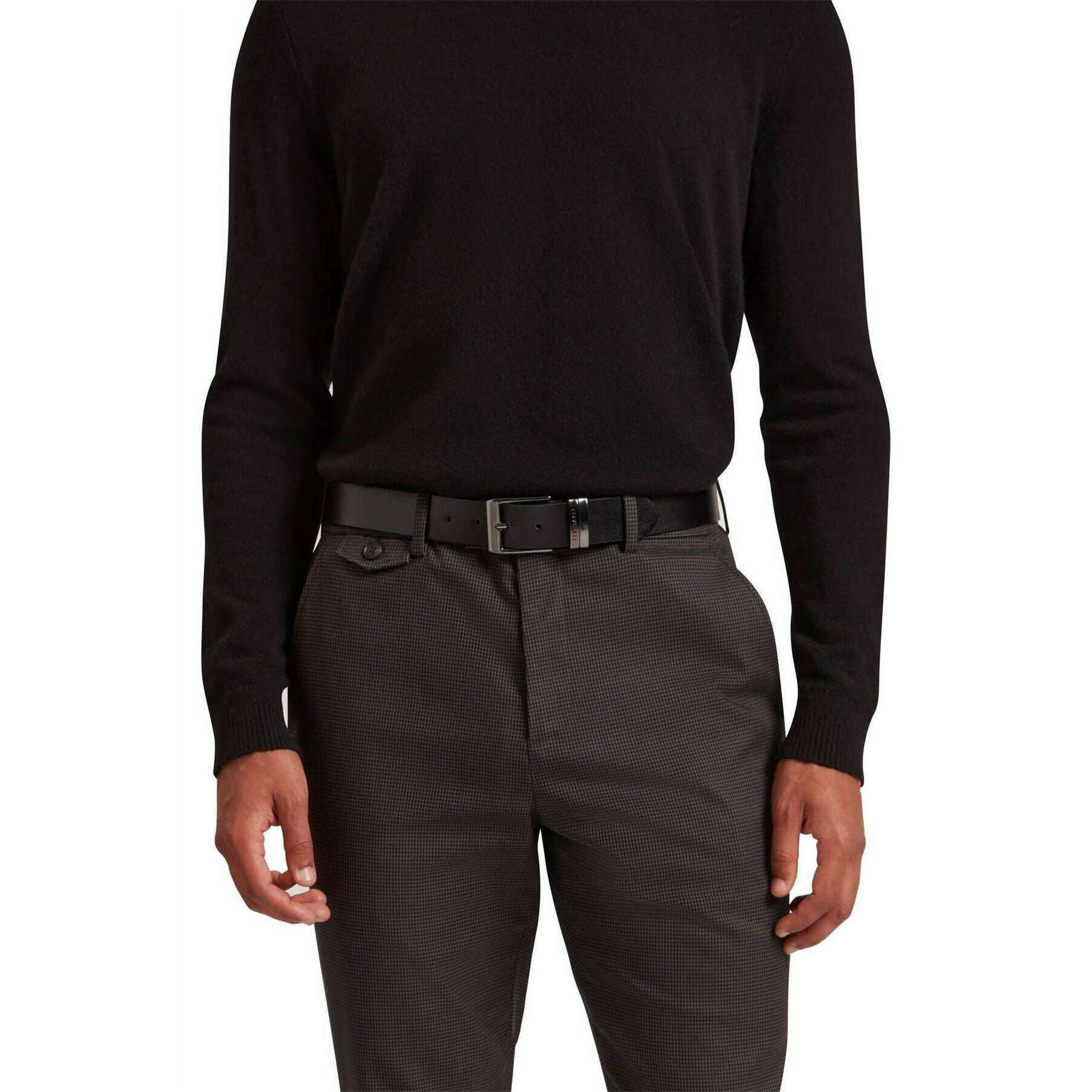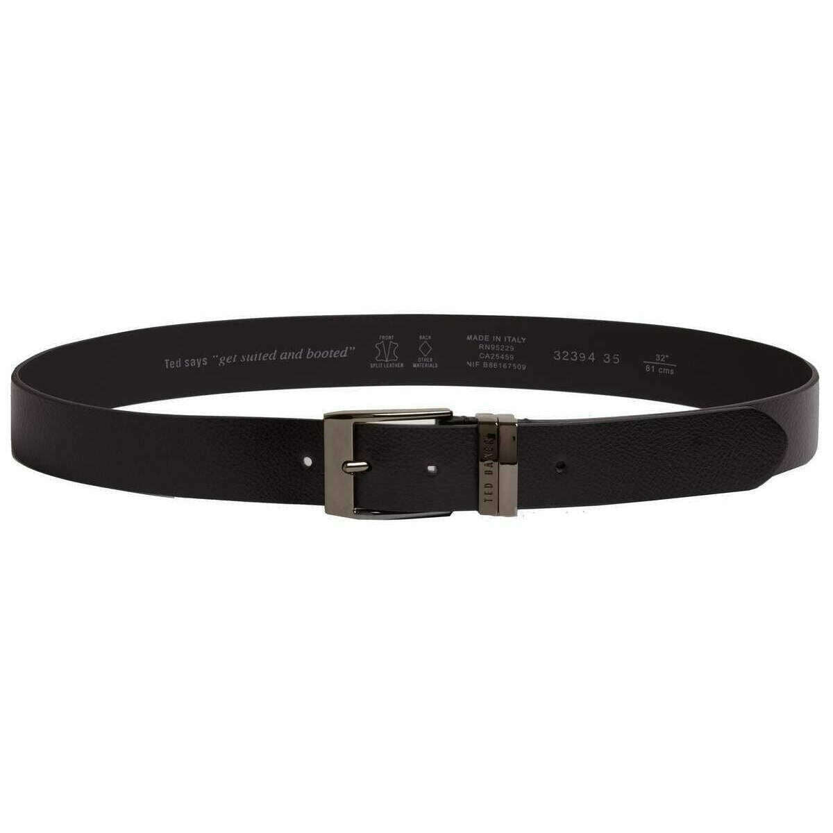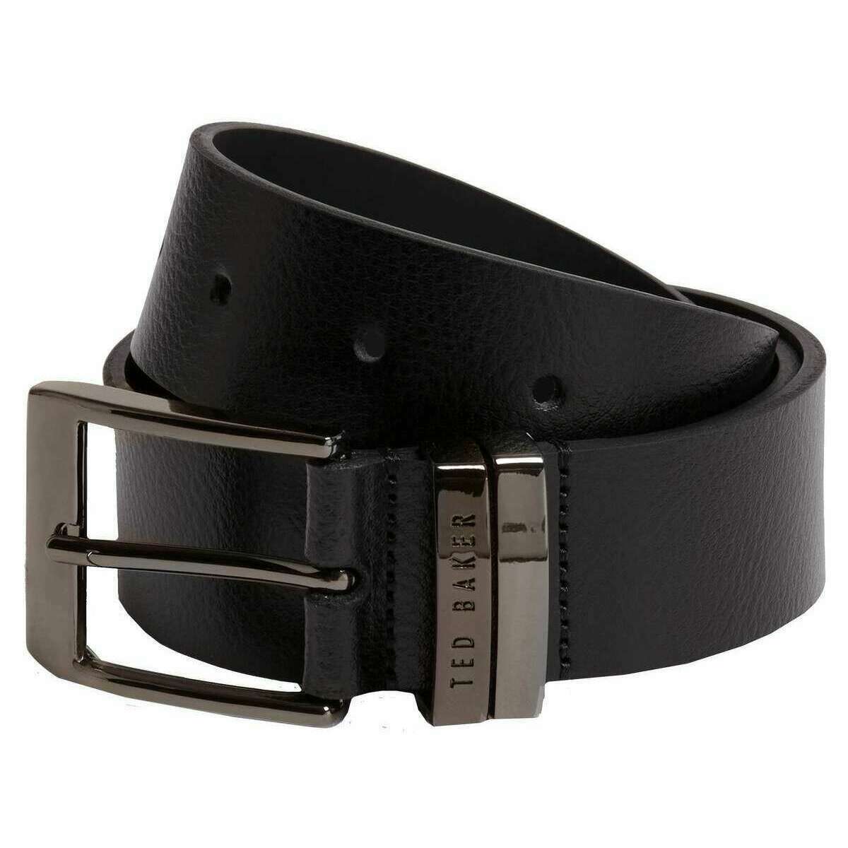 This well made men's pearsse pebbled leather belt from Ted Baker comes in a black colour and is manufactured from 100% split leather. All the belts come complete with ted baker packaging. The Ted Baker Pearsse Pebbled Leather Belt - Black will suit a casual or formal look as it features a very simple but stylish finish with branding on the end of the belt. The sleek cut edge compliments the leather perfectly making it an essential to your attire for any occasion. The gun metal pairs perfectly with the black belt and will suit any outfit.