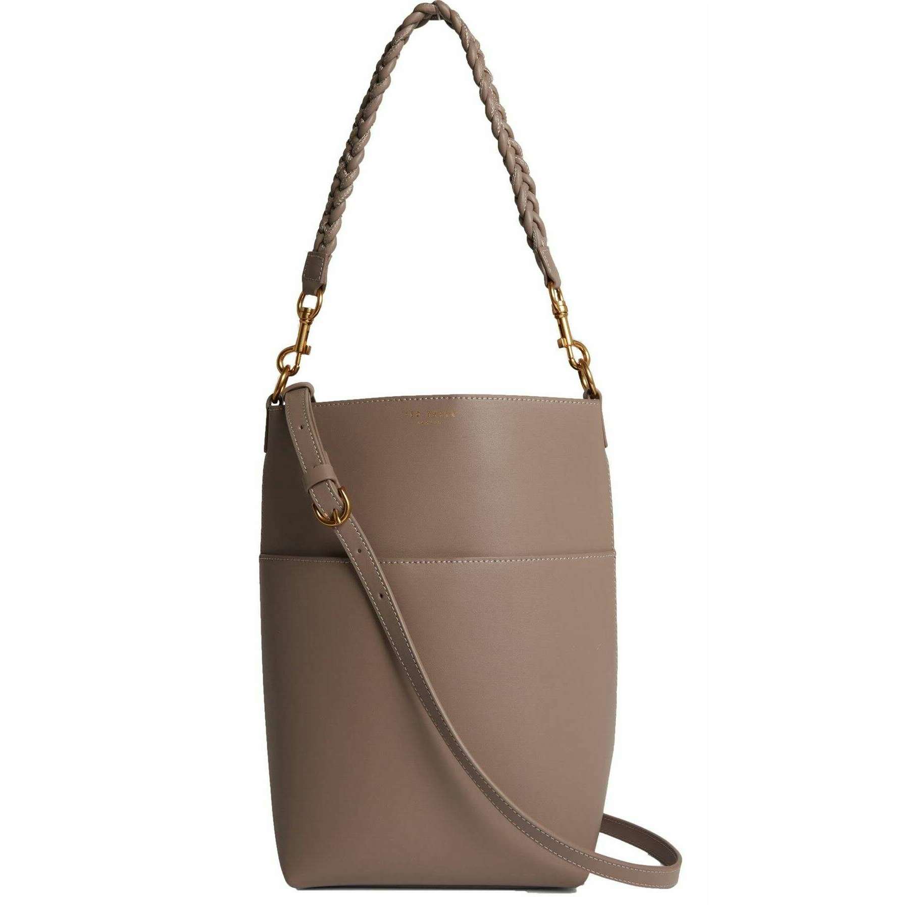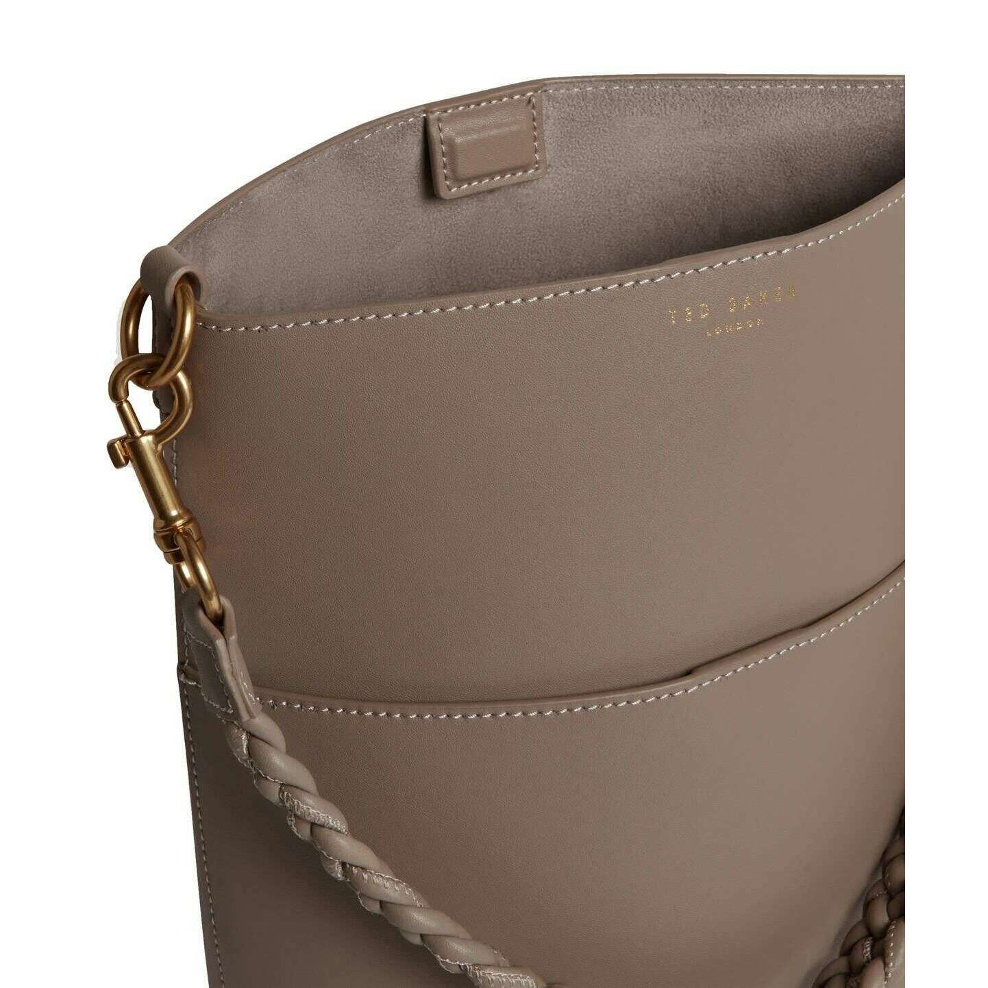 This wannda plaited handle elongated leather bucket bag for women is fashioned by the brand Ted Baker in a brown colour and is made from 100% bovine leather shell. It measures 30cm(height) x 22.5cm(width) x 13cm(depth). All the bags come complete with ted baker packaging. The Ted Baker Wannda Plaited Handle Elongated Leather Bucket Bag - Taupe is a wardrobe essential for everyday use if you re going for a casual but sophisticated look. This genuine leather, taupe coloured bag provides lots of space with an extra pocket on the outside of the bag and is easily accessible with a magnetic closing, plus two different handles for multiple looks. Completing this bag is the subtle gold Ted Baker branding on the top of bag.