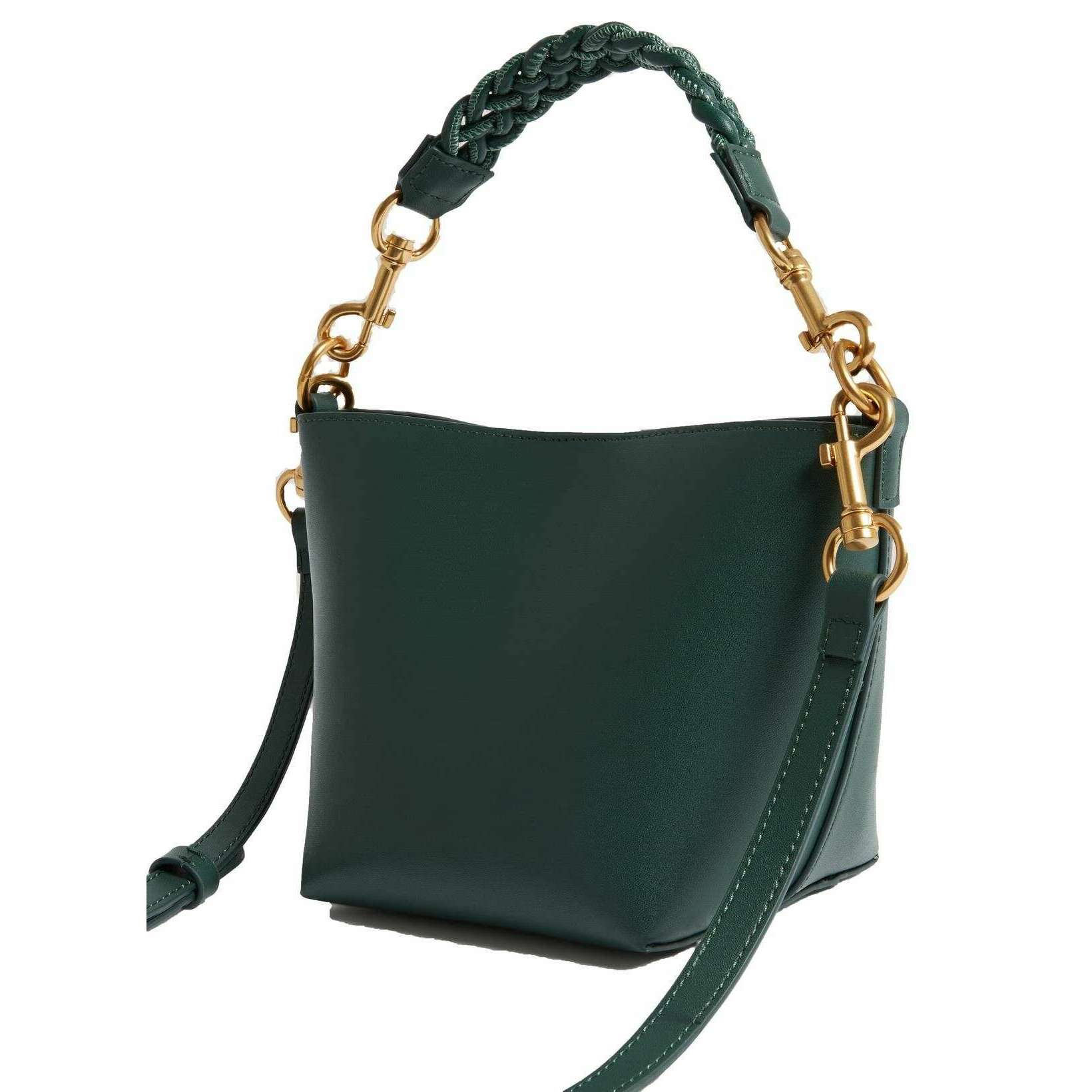 This women's wavely plaited handle small bucket tote bag by the brand Ted Baker is made from 100% bovine leather shell and is showcased in green. It measures 15cm(height) x 22cm(width) x 13cm(depth). All the bags come complete with ted baker packaging. The Ted Baker Wavely Plaited Handle Small Bucket Tote Bag - Green will elevate any outfit from casual to elegant. This chocolate brown bag has a plaited leather shoulder strap and an adjustable leather crossbody strap. Suitable for everyday use or a special occasion, this bag is light to carry and easily accessible with its magnetic closure. Completing this bag is the subtle Ted Baker branding on the top of the bag.