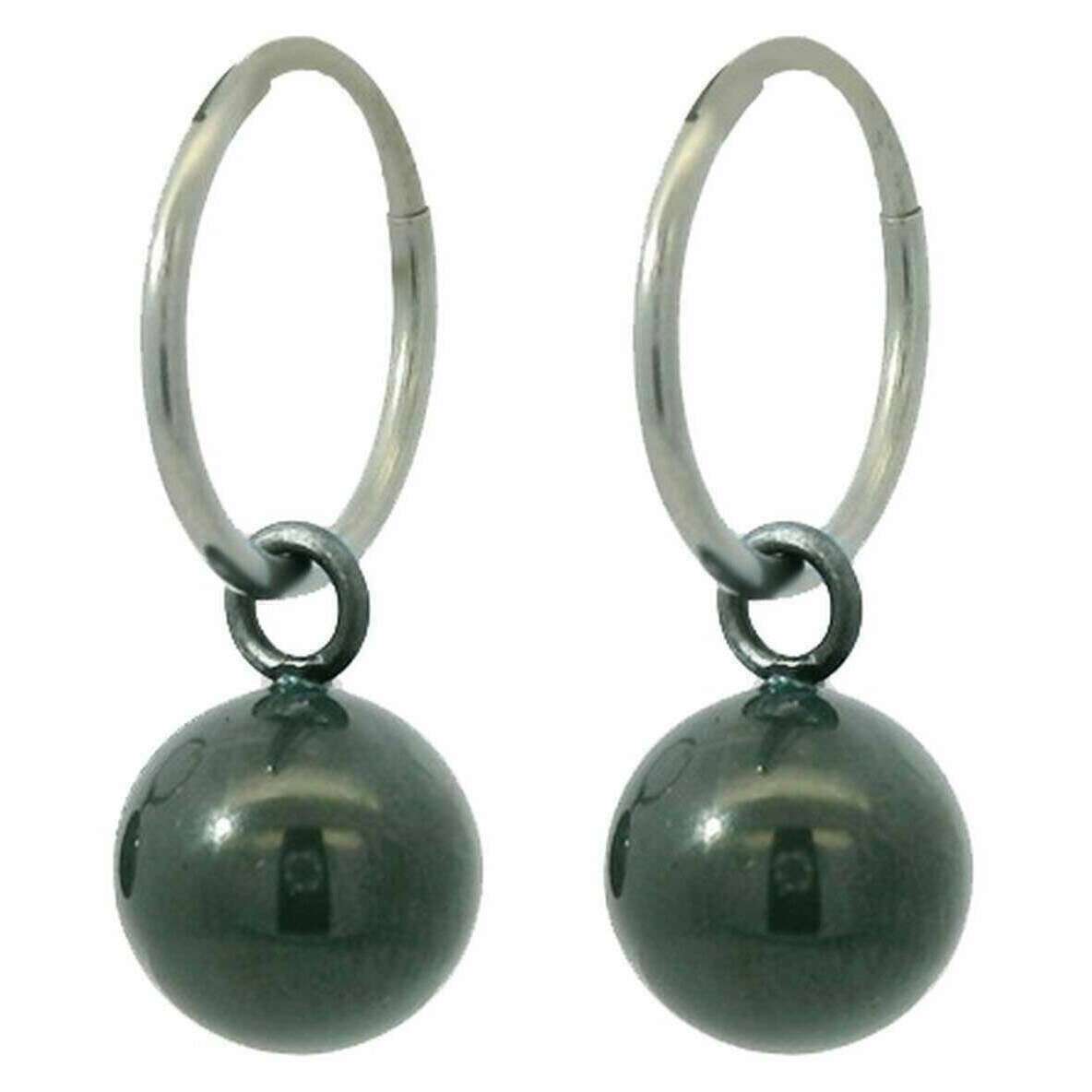 Ti2 Titanium Bead Charm Hoop Earrings - Black
