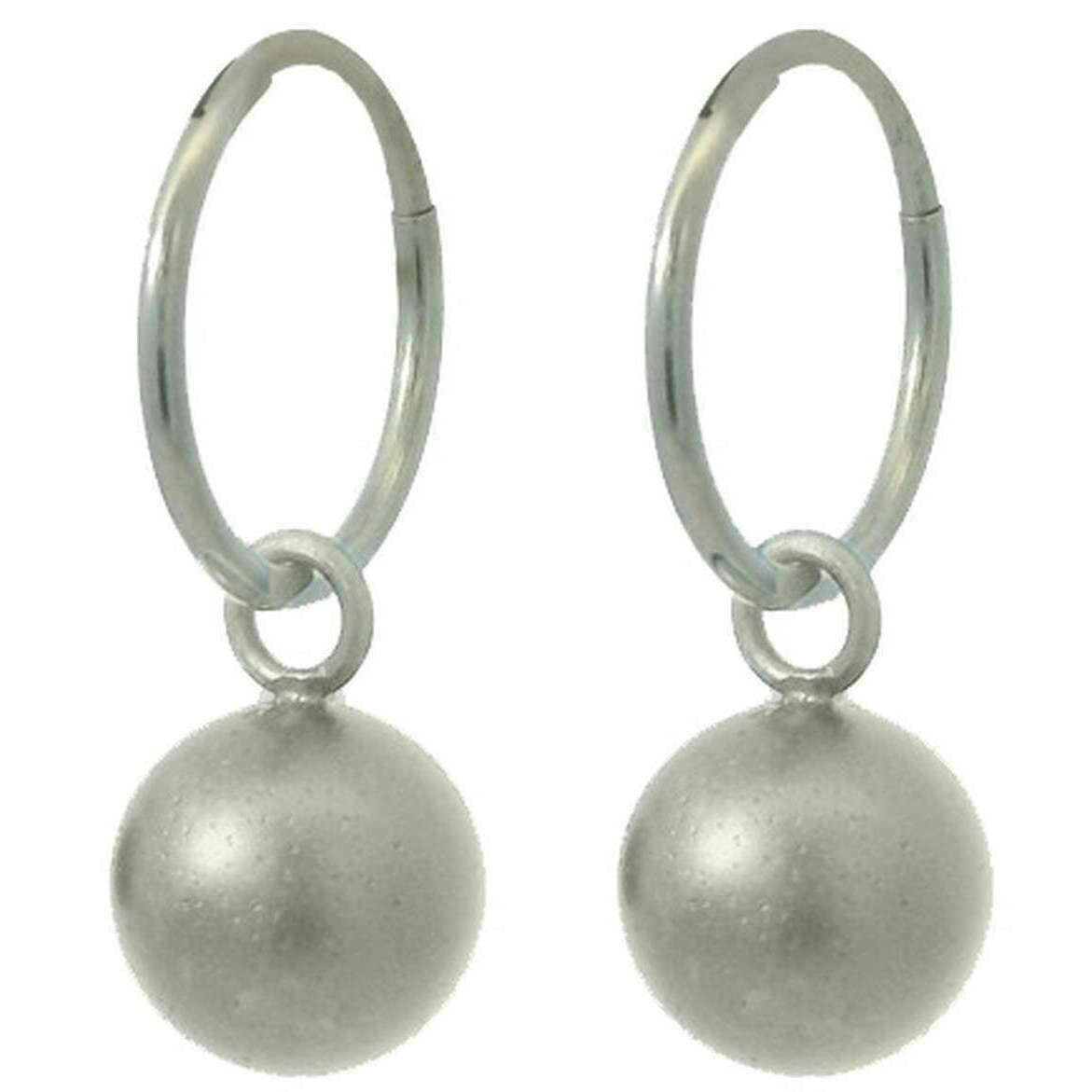 Ti2 Titanium Bead Charm Hoop Earrings - Natural Silver