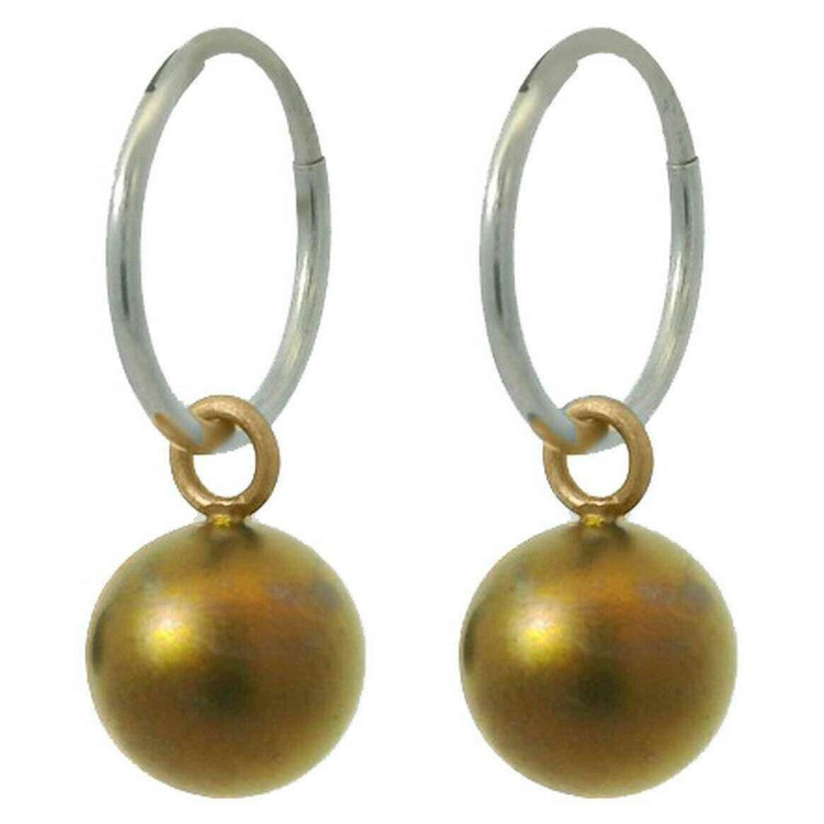 Ti2 Titanium Bead Charm Hoop Earrings - Tan