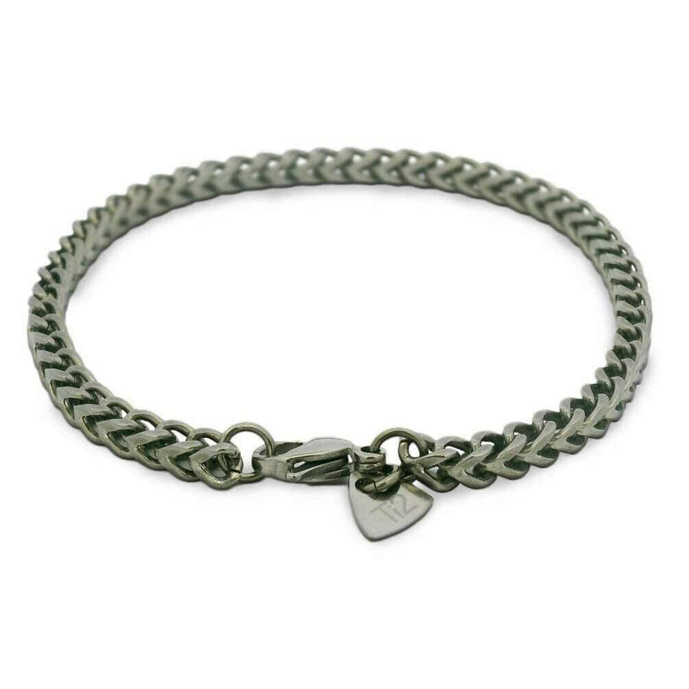 Manufactured from 100% titanium is this silver men's fine square wheat bracelet by the designer Ti2 Titanium. All the bracelets come complete with ti2 titanium packaging The Ti2 Titanium Fine Square Wheat Bracelet - Silver a beautiful design that will fit comfortably around your wrist. This chain has a simple yet eye-catching style. Fastened with a lobster catch, which also includes square shaped links. It is kind to skin with it being hypo-allergenic, even to those who are more sensitive to certain materials.