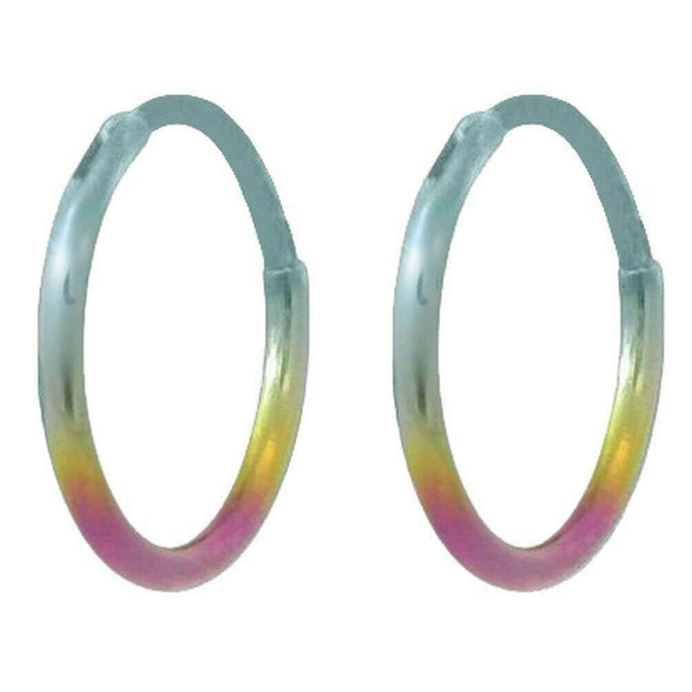 Manufactured from 100% hypoallergenic pure titanium are these rainbow a women's small full hoop earrings by the designer Ti2 Titanium. It measures 1cm(height) x 1cm(width). All the earrings come complete with a ti2 titanium presentation box. The Ti2 Titanium Small Full Hoop Earrings - Rainbow A are the ideal accessory to finish any look. These small earrings can be comfortably worn every day as they are hypoallergenic preventing any irritation. The size of the full hoop is 1mm while the diameter is 10mm. Crafted from grade 5 titanium offers strength and durability. These hoops are hinged and secure with a click. Please Note: The colour of the titanium may vary.