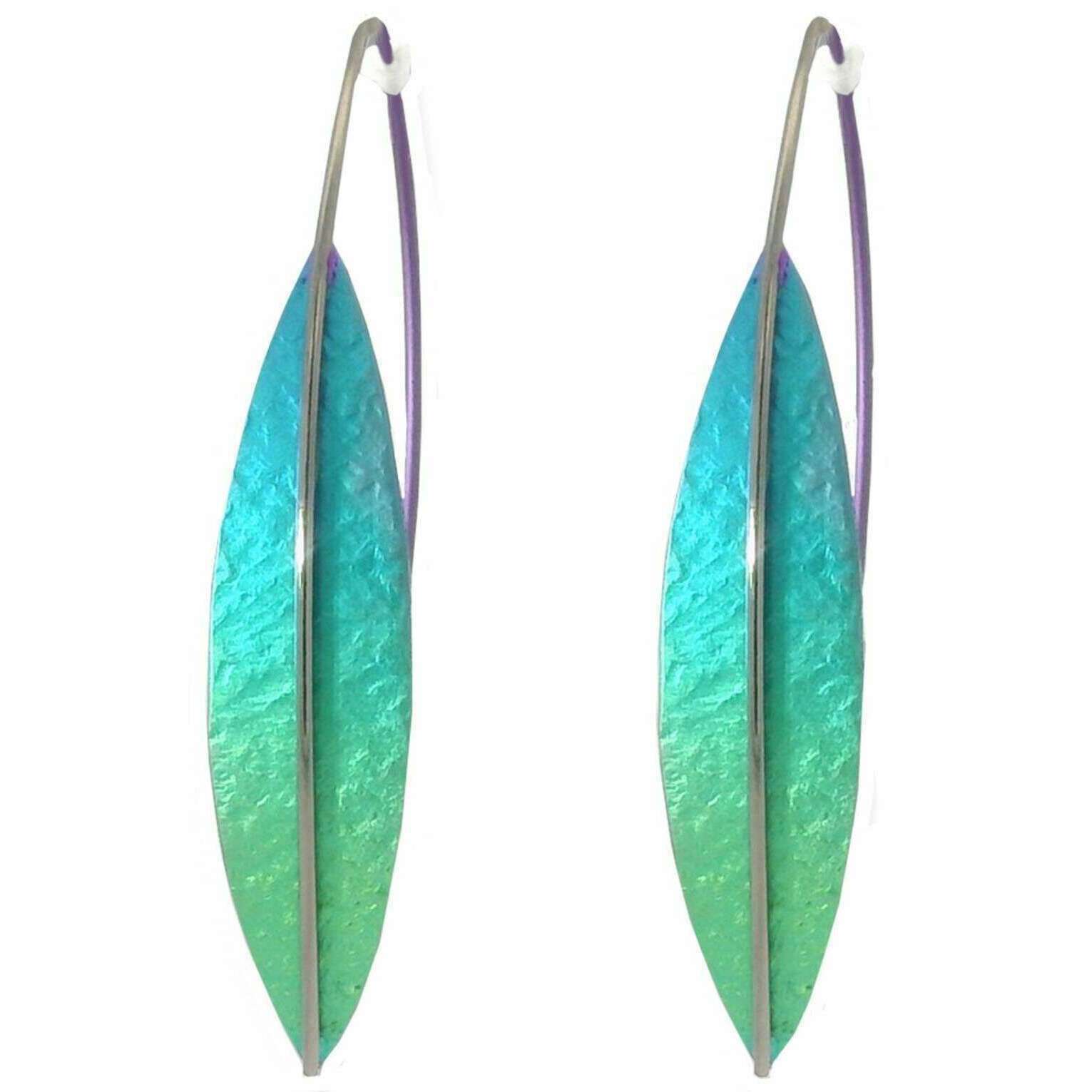 Designer Ti2 Titanium have brought you these women's 100% hypoallergenic pure titanium earrings using green tones. It measures 4.5cm(height). All the earrings come complete with a ti2 titanium presentation box. The Ti2 Titanium Spear Drop Earrings - Green inspired by nature, feature textured spear shapes with a polished ear wire down the centre. These earrings are full of colour which will not fade because titanium has a high corrosion resistance meaning that this material is unaffected by seawater, chlorine and many other chemicals, meaning you can wear them at all times. It also means they are super light and also hypoallergenic making them completely safe for your skin. Please Note: The colour of the titanium may vary.