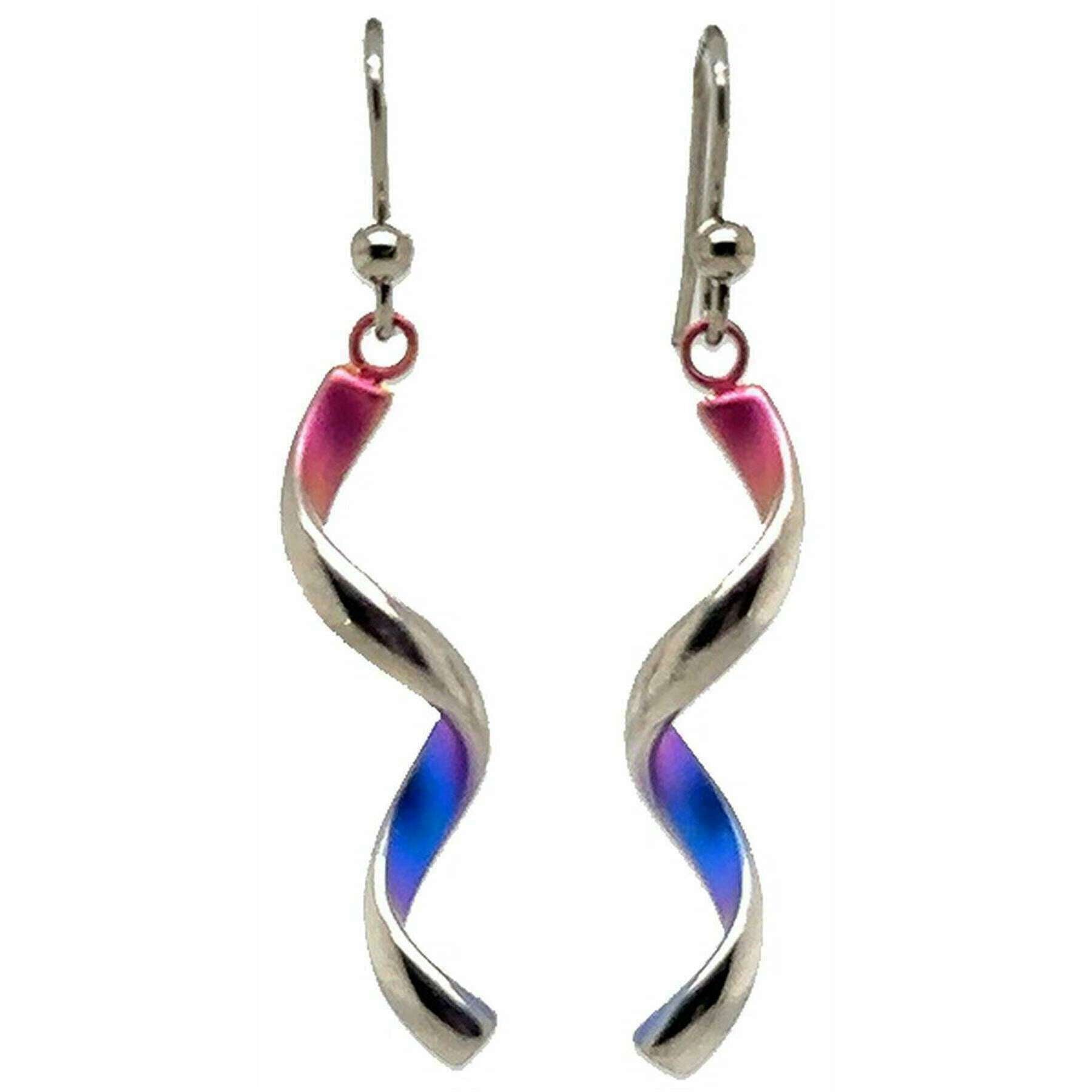 Ti2 Titanium Spiral Drop Earrings - Pink