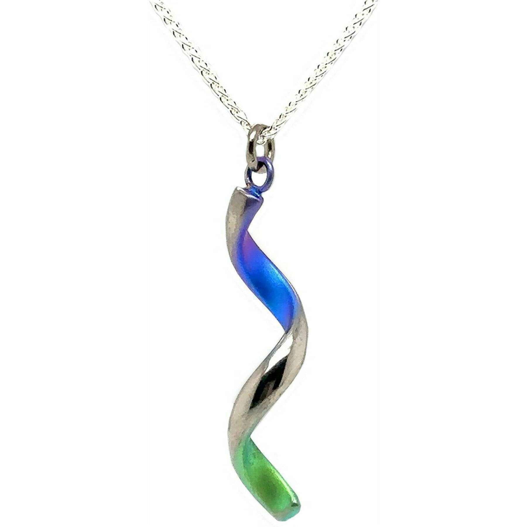 This women's spiral pendant has been made from 100% hypoallergenic pure titanium, featured in a green colour and is from the brand Ti2 Titanium. It measures 40.6cm(chain length). All the pendants come complete with a ti2 titanium presentation box. The Ti2 Titanium Spiral Pendant - Green is a gorgeous piece with a lovely design perfect for all outfits and occasions, adding a pop of colour and personality to your attire, whilst still keeping a classy and subtle look. Crafted with hypoallergenic titanium, makes it great for all skin types, especially sensitive skin as it will not irritate. This piece is a must-have in your jewellery collection. This chain measures up to 16 inches whilst the pendant measures 3.5cm tall. Please Note: The colour of the titanium may vary.