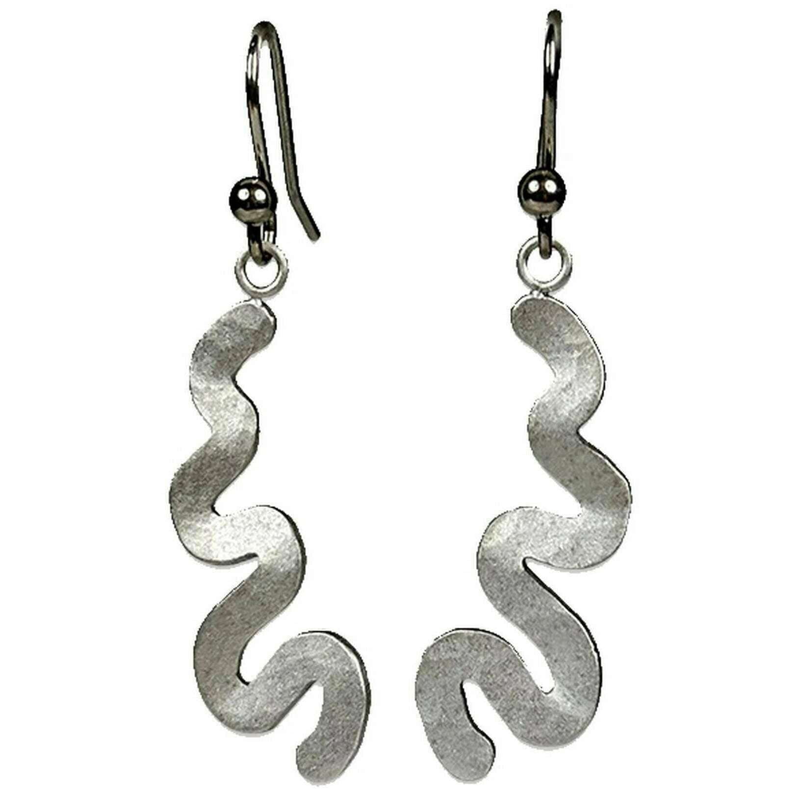 Ti2 Titanium Squiggle Drop Earrings - Natural Silver