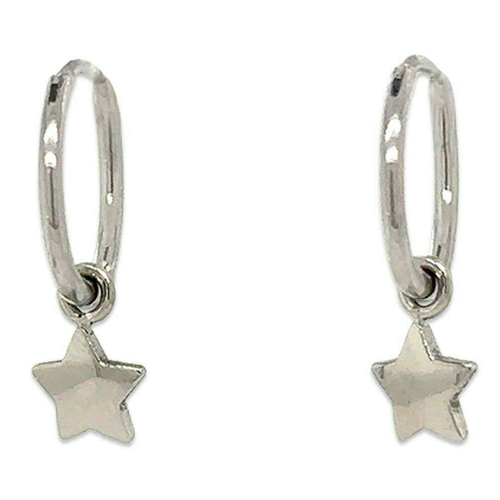 Ti2 Titanium Star Charm Hoop Earrings - Natural Polished Silver