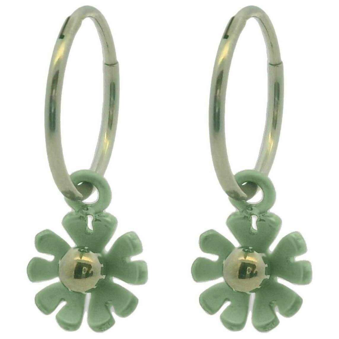 Ti2 Titanium Ten Petal Flower Charm Hoop Earrings - Light Green