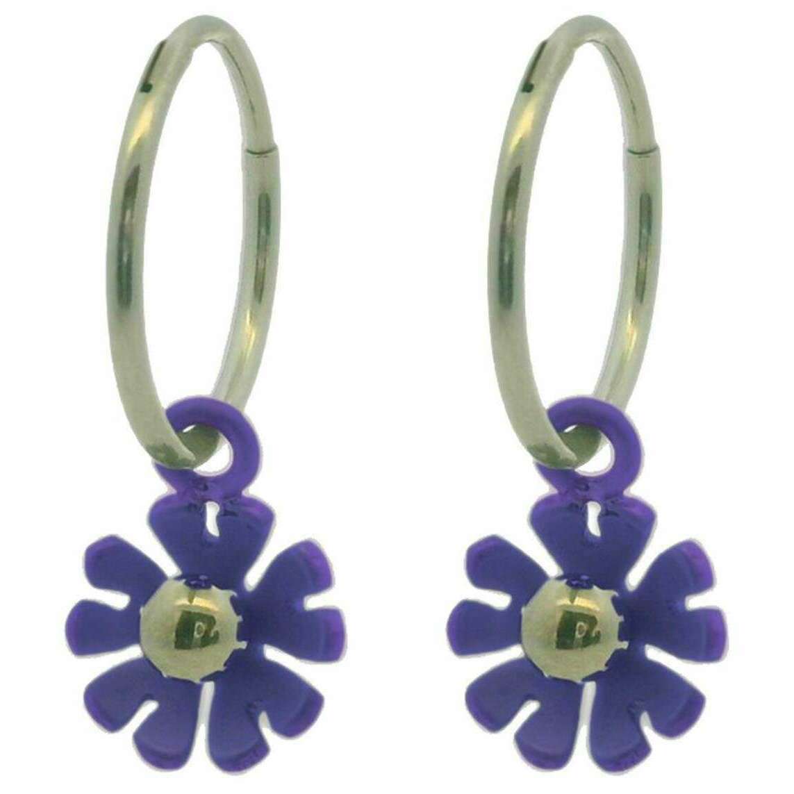 Ti2 Titanium Ten Petal Flower Charm Hoop Earrings - Purple