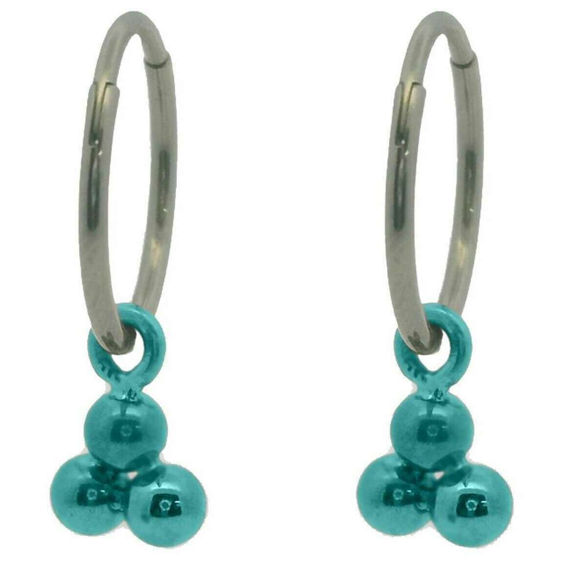 Ti2 Titanium Triple Bead Charm Hoop Earrings - Kingfisher Blue
