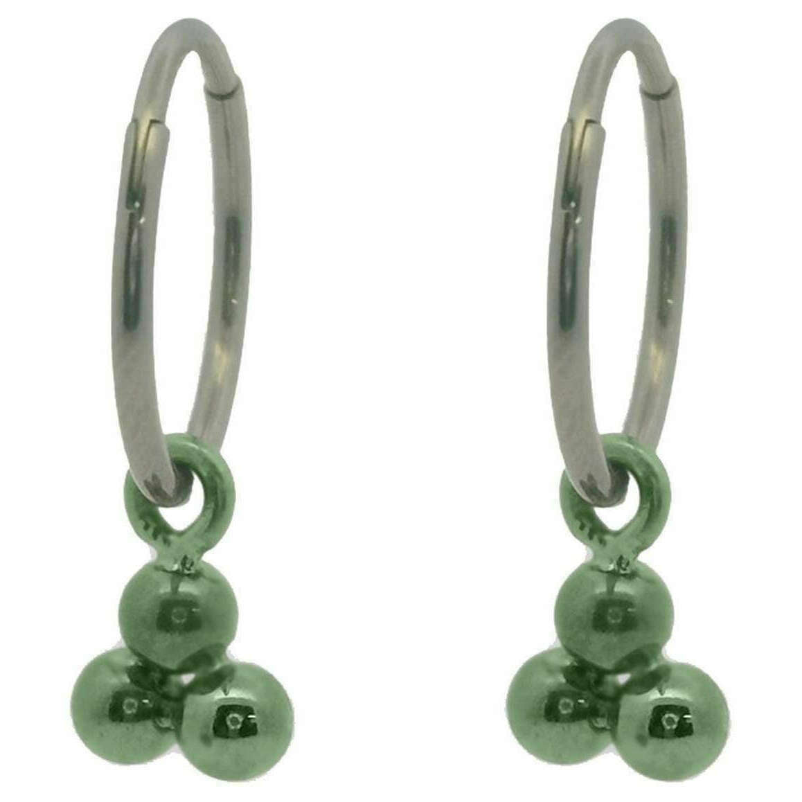 Ti2 Titanium Triple Bead Charm Hoop Earrings - Light Green
