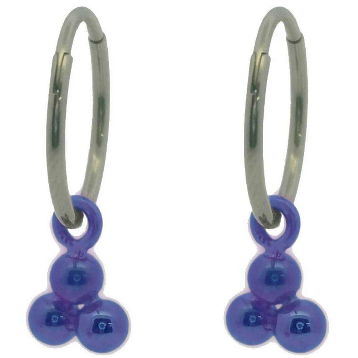 Ti2 Titanium Triple Bead Charm Hoop Earrings - Purple