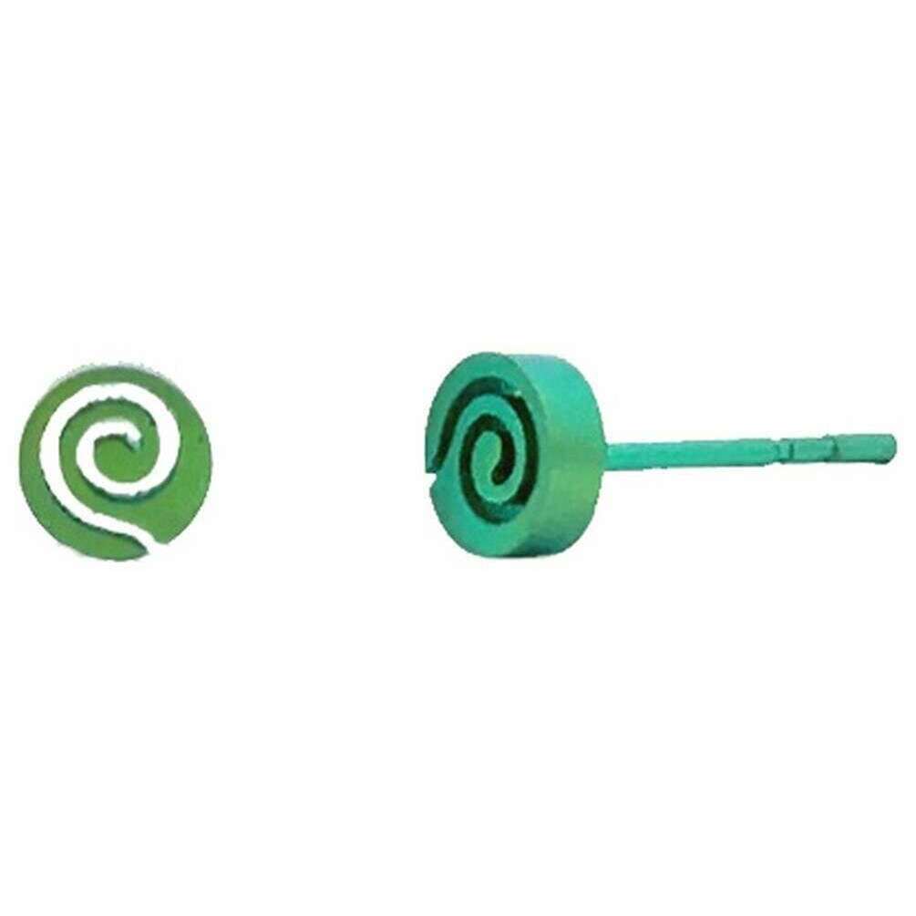 Ti2 Titanium Whirlpool Stud Earrings - Green