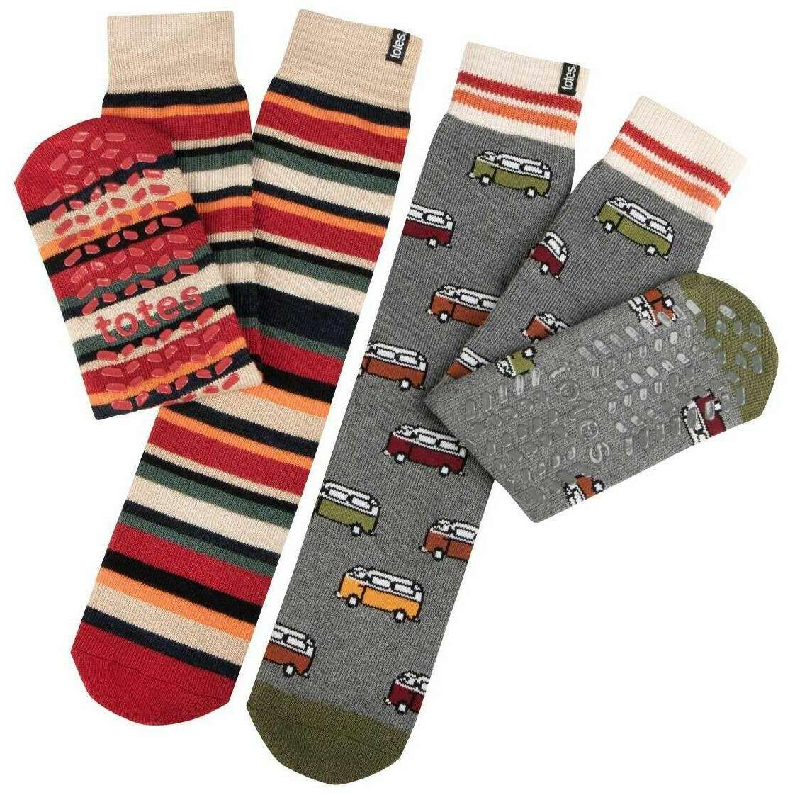Totes Toasties 2 Pack Original Slipper Socks - Campervan Grey