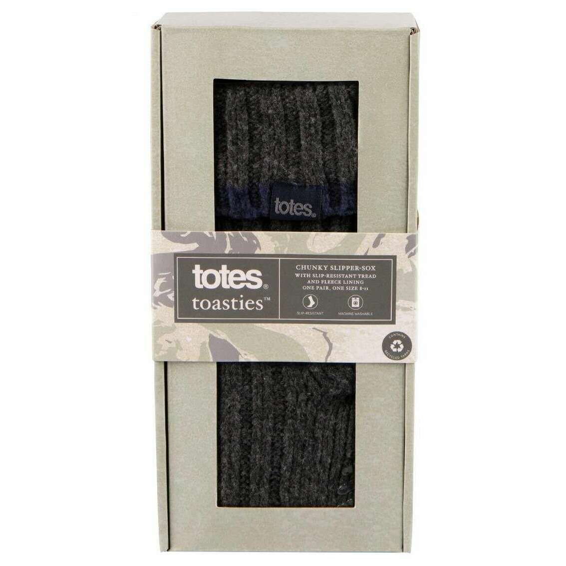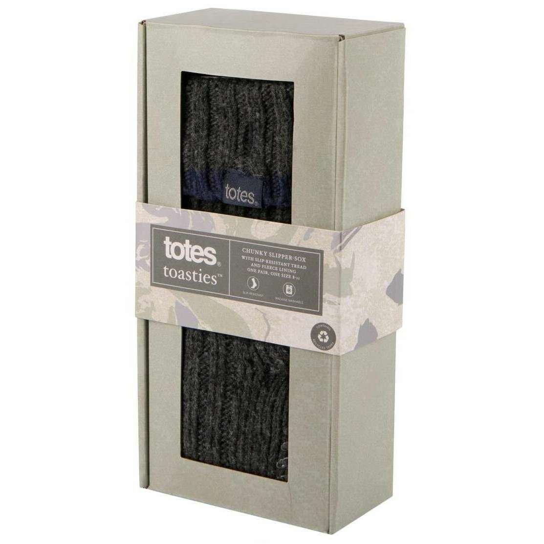 Introducing these men's chunky slipper socks by Totes Toasties, they are manufactured from 100% polyester in a grey colour. Also the grey socks are designed in a plain pattern, It is recommended to machine washable at 30 degrees to keep these socks in good condition. All the socks come complete with totes toasties packaging. The Totes Toasties Chunky Slipper Socks - Grey feature a turned over top with a ribbed design for a classic cosy look. Crafted with a fleece lining these socks offers optimal protection from the cold on those wintery icy nights, whilst being ultra soft on your feet. These socks have non-slip grips on the sole allowing you to walk on any surface in your house without the worry of falling and hurting yourself. Great for gifting to your loved ones this winter.