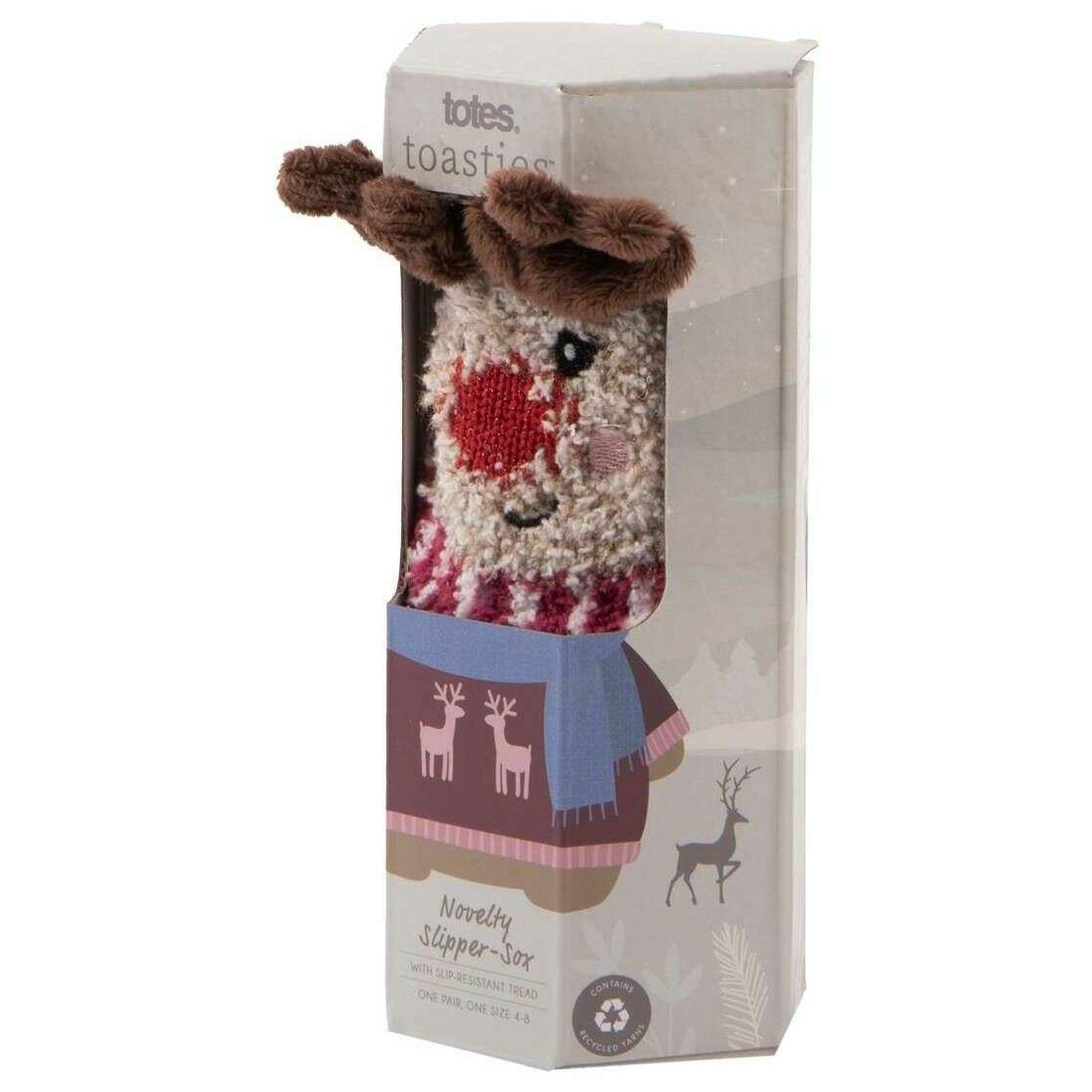 Totes Toasties Novelty Super Soft Slipper Socks - Reindeer Navy