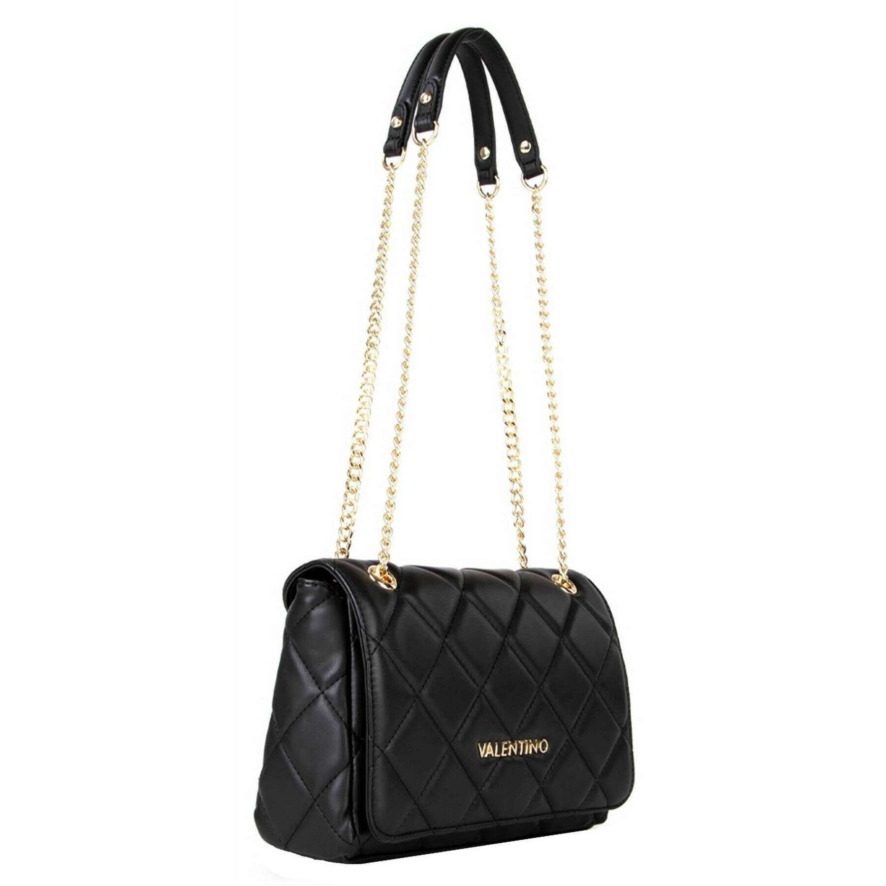 This women's ocarina flap bag has been made from 100% polyurethane, featured in a black colour and is from the brand Valentino. It measures 17cm(height) x 25.5cm(width) x 9cm(depth). All the bags come complete in valentino packaging. The Valentino Ocarina Flap Bag - Black exudes elegance, giving you the perfect, stylish companion for all occasions. Its beautiful, quilted texture offers timeless class, and you will want to pick this up whenever you leave the house. The chain strap can be used like a handbag , draped over your forearm of pulled to a longer strap that hangs over your shoulder, both giving you a fine accessory to store you essentials.