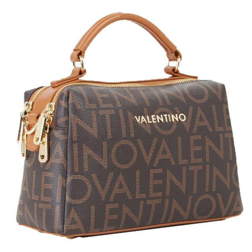 Manufactured from recycled polyurethane is this morto brown/natural tan women's regina re crossbody bag by the designer Valentino. It measures 16cm(height) x 25cm(width) x 11cm(depth). All the bags come complete in valentino packaging. The Valentino Regina Re Crossbody Bag - Morto Brown/Natural Tan will give you a luxurious accessory with modern practicality and timeless charm. It s the perfect size to carry with you to store your essentials without the bulk. The exterior showcases a unique design, embellished with Valentino s iconic logo, it exudes authenticity and designer flair. It has a top carry handle as well as a detachable and adjustable cross body strap which allows you to carry it to suit the occasion.