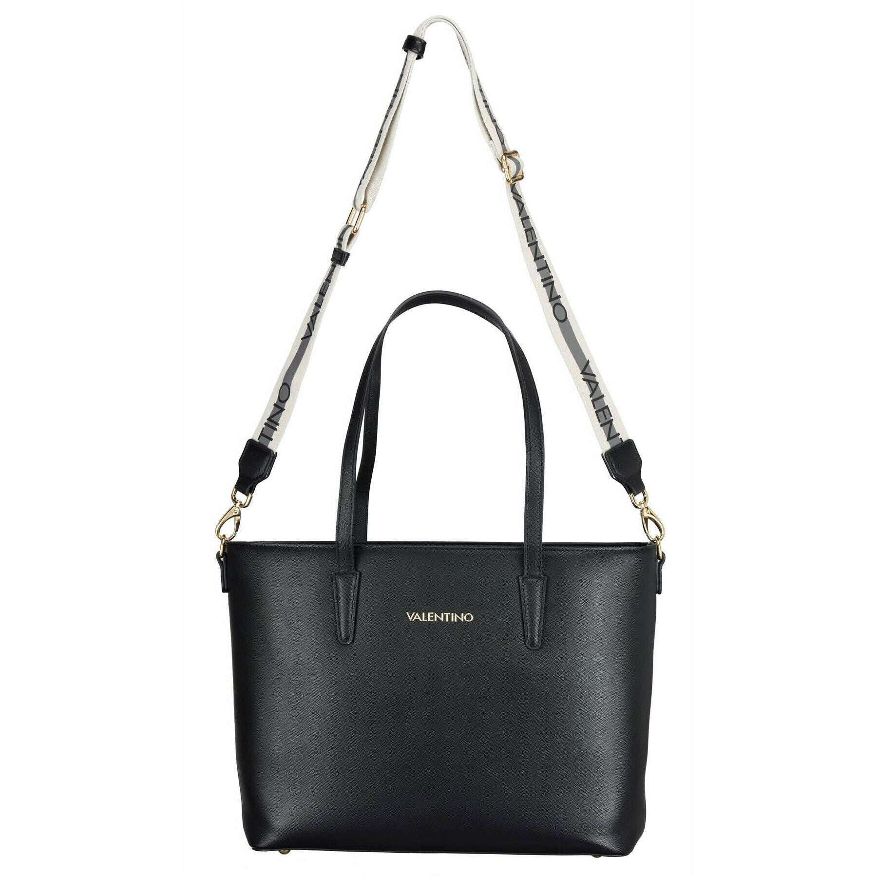 This well made women's zero re shopping bag from Valentino comes in a black colour and is manufactured from recycled polyurethane. It measures 24cm(height) x 28cm(width) x 14cm(depth). All the bags come complete in valentino packaging. The Valentino Zero Re Shopping Bag - Black showcases a minimal design which is perfect for any occasion. Its secure zipped closure ensures security while the logo and other details give it a sophisticated finish. Made from recycled materials, this piece is the perfect sustainable companion for those looking for a more mindful accessory. The main compartment is spacious and features multiple compartments to help organise your essentials. It comes with both a shoulder strap and an adjustable crossbody strap, both detachable for effortless and stylish carrying.