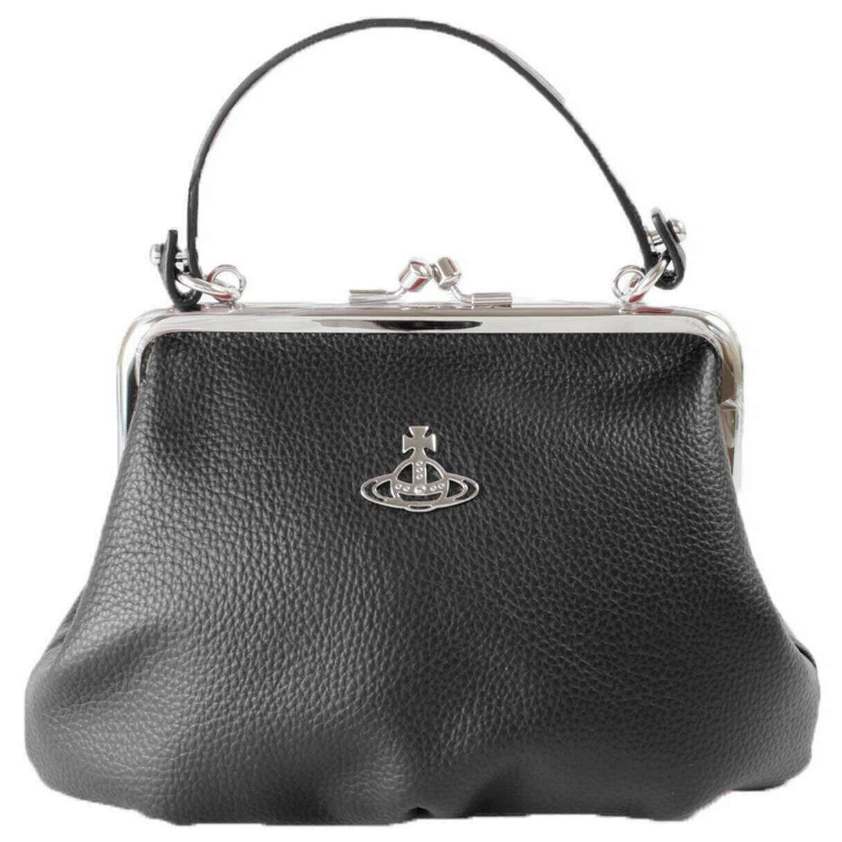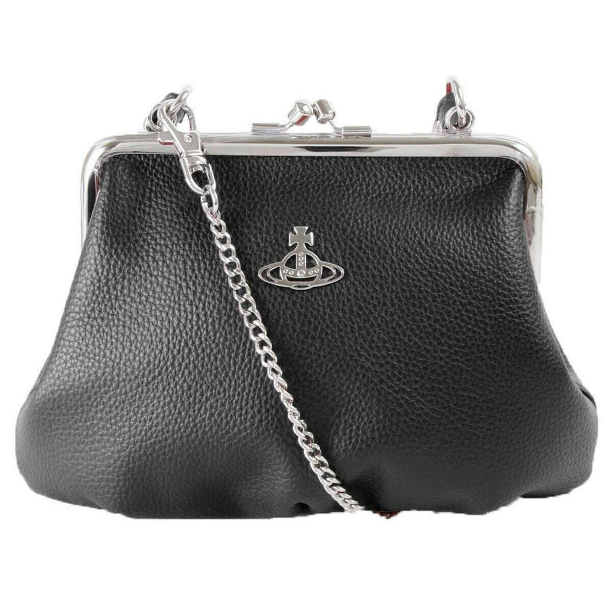 Perfect for women is this Vivienne Westwood black granny frame purse, it is also made from 100% polyurethane. It measures 17cm(height) x 22cm(width) x 7cm(depth). All the bags come complete with a vivienne westwood dust bag. The Vivienne Westwood Granny Frame Purse - Black Is small, compact but is big on elegant style. Carry it either using the top handle or attach the stunning chain shoulder strap for a hands-free look. Inside is a zipped pocket, perfect for keeping your smaller essentials and the main compartment can store any other bits you need. Everything is secured using a timeless kiss-lock clasp and the bag is beautifully finished with an orb motif.