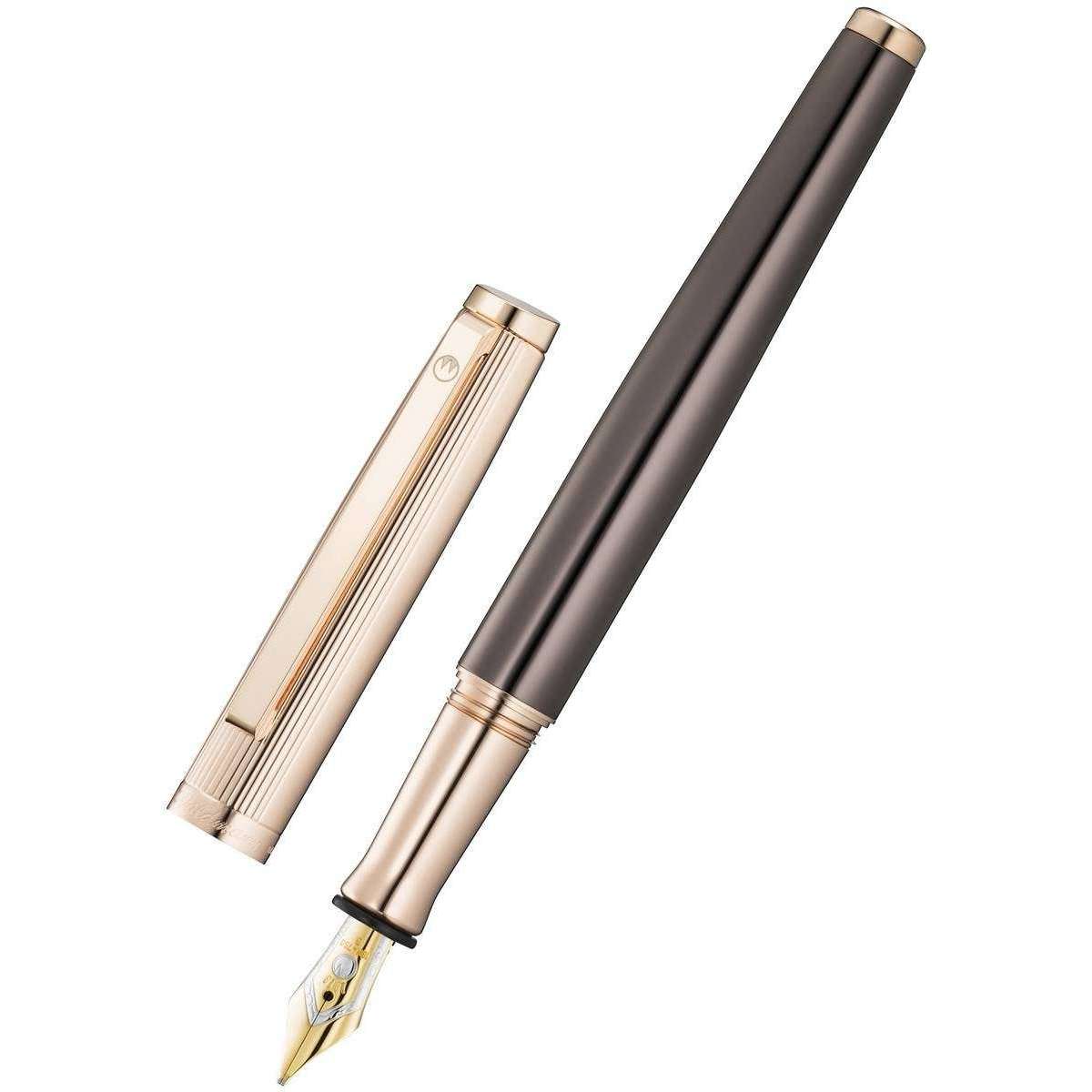Waldmann Pens Tuscany Pinstripe 18ct Gold Nib Fountain Pen - Chocolate Brown/Rose Gold