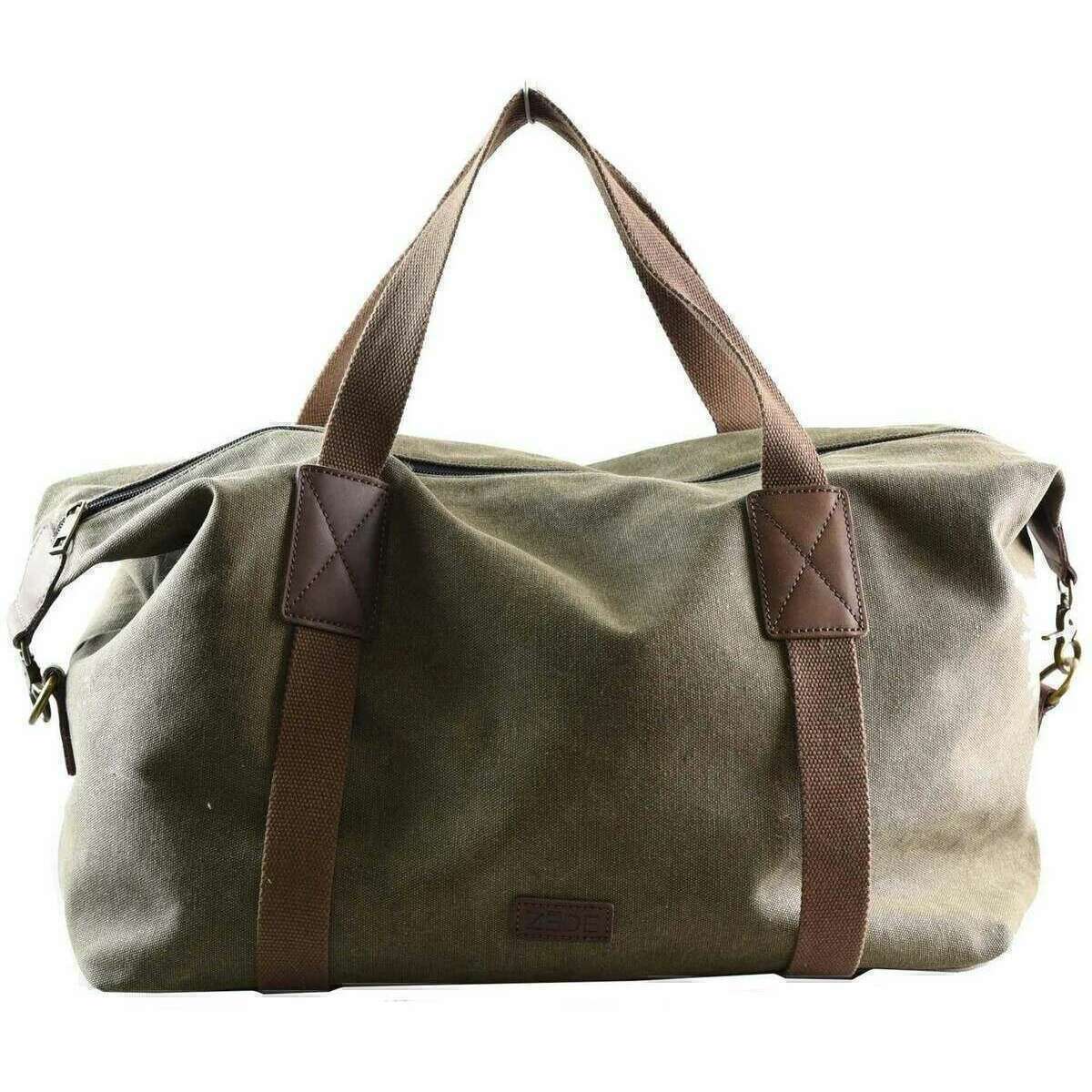 This well made unisex east station travel bag from ZEDE comes in a olive green colour and is manufactured from 100% faded cotton canvas and split cowhide leather. It measures 27cm(height) x 43cm(width) x 16cm(depth). It is recommended to wipe clean with damp cloth to keep this bag in good condition. All the bags come complete in zede packaging. The ZEDE East Station Travel Bag - Olive Green is a great choice if you want that extra storage, perfect for gym trips, work, day trips or other events. The main section is roomy, giving you plenty of space for your essentials. It also has 2 open internal pockets and a zipped one for more secure storage. It is easy to carry with sturdy webbed carry handles as well as an adjustable shoulder strap that can be detached when not needed. The design is simplistic but still offers contemporary style making it a must have for your collection.