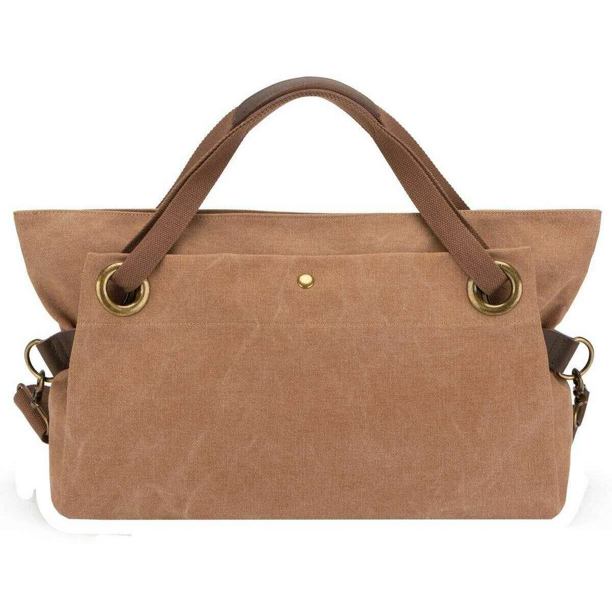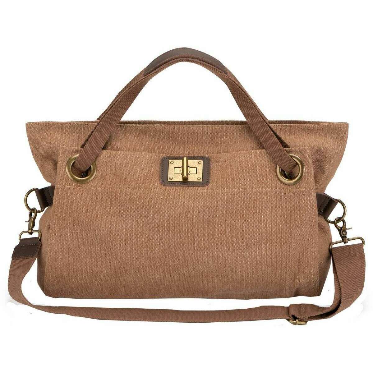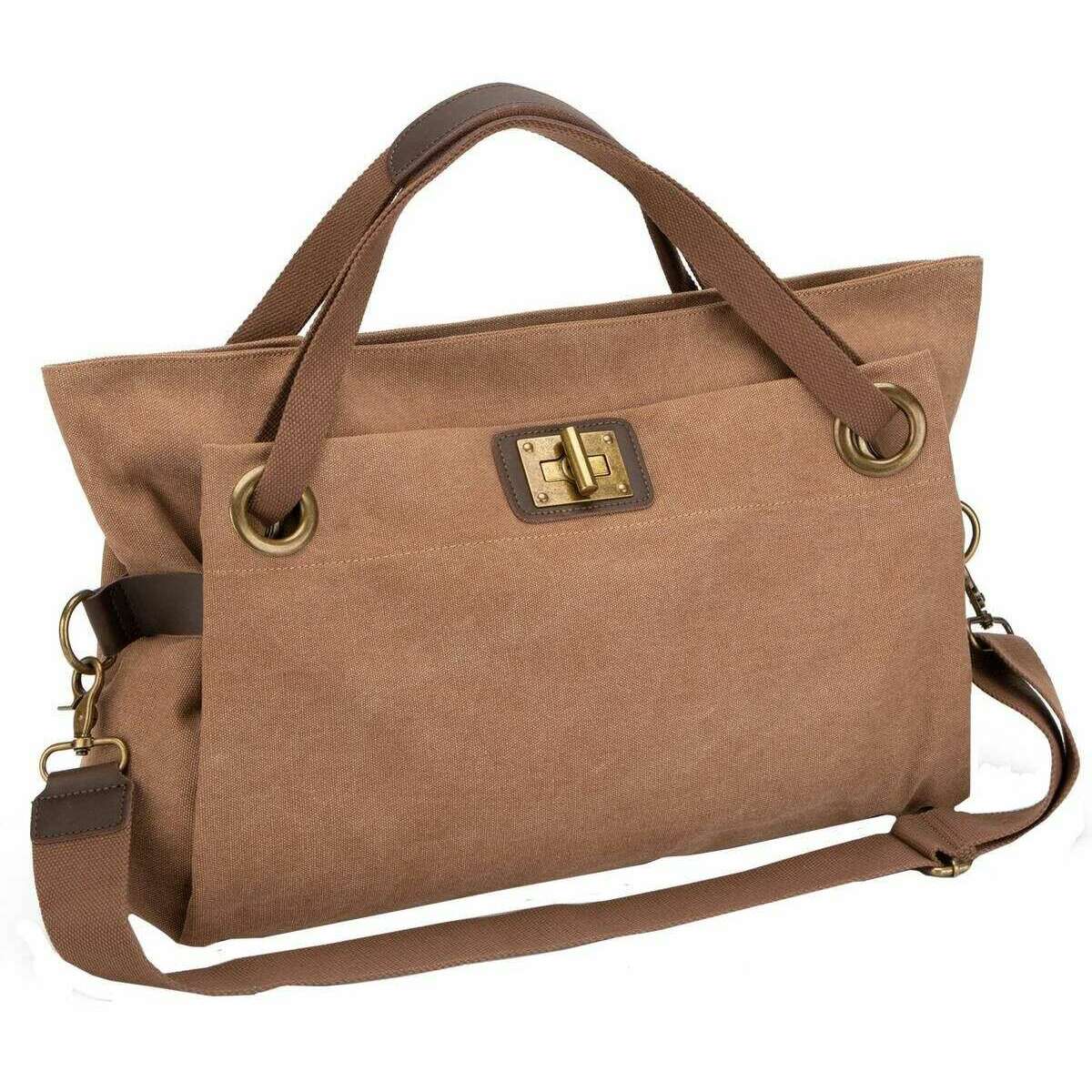 This unisex pont des arts cross body bag by the brand ZEDE is made from 100% faded cotton canvas and split cowhide leather and is showcased in brown. It measures 43cm(height) x 30cm(width) x 14cm(depth). All the bags come complete with zede packaging. The ZEDE Pont Des Arts Cross Body Bag - Camel Brown is a three in one bag by being able to wear it by hand, crossbody and over the shoulder with the adjustable detachable strap and two large handles. Featuring a zipper closure for a secure wear, a large main compartment for ample storage, exterior pockets and interior pockets for more storage and great organisation. This gorgeous design makes this the perfect bag to elevate any outfit whilst carrying your essentials in style. Crafted from washed cotton canvas and split leather ensures a water-repellent protection and durability.