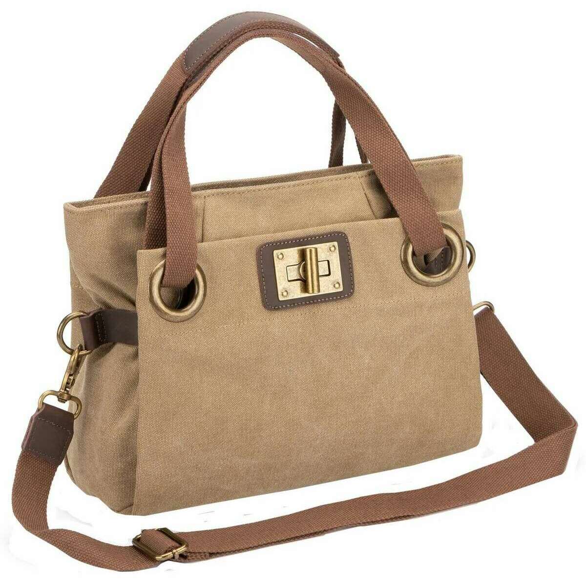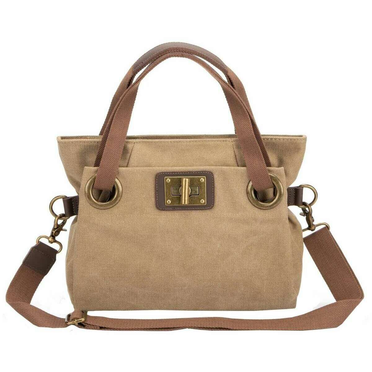This unisex pont des arts mini cross body bag by the brand ZEDE is made from 100% faded cotton canvas and split cowhide leather and is showcased in khaki. It measures 26cm(height) x 25cm(width) x 11cm(depth). All the bags come complete with zede packaging. The ZEDE Pont Des Arts Mini Cross Body Bag - Beige Khaki is a sweet feminine everyday bag that can either be worn across the body, on the shoulder or as a handbag with the detachable adjustable strap and two handles. Featuring a front and back exterior pocket and interior pockets allow for great storage and organisation when carrying your essentials. This beautiful and chic design will elevate and complete any outfit, sure to get you compliments. Crafted from faded cotton canvas and cowhide split leather ensures a water-repellent wear.